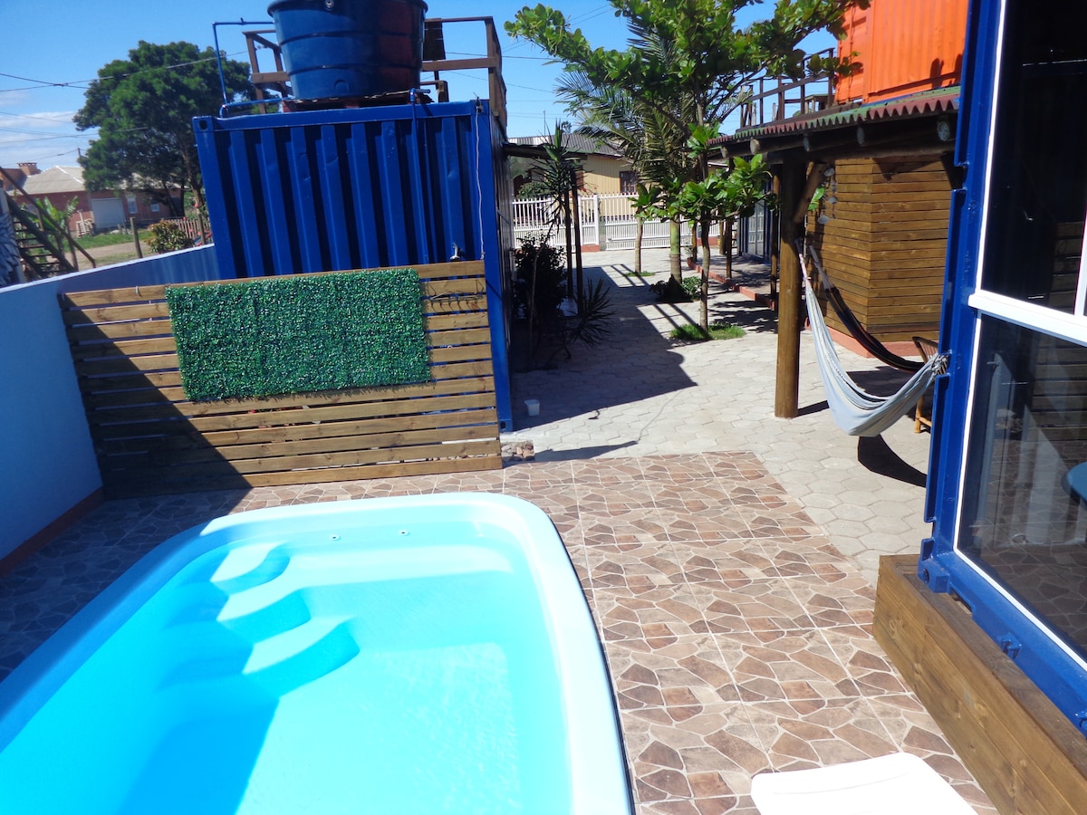 Desfrute de um refúgio aconchegante a apenas 3 quadras da Praia! A casa de hóspedes é totalmente privativa e une conforto e praticidade: quarto espaçoso, cozinha equipada, sala com TV, Amazon Fire Stick, TV Digital, Wi-Fi, ar-condicionado, ducha quente, churrasqueira e estacionamento. O pátio conta com fogueira, chuveiro externo e rede, perfeito para relaxar ao ar livre. Localização privilegiada, próxima à orla gastronômica e aos melhores restaurantes de Torres — Aloha 🌺