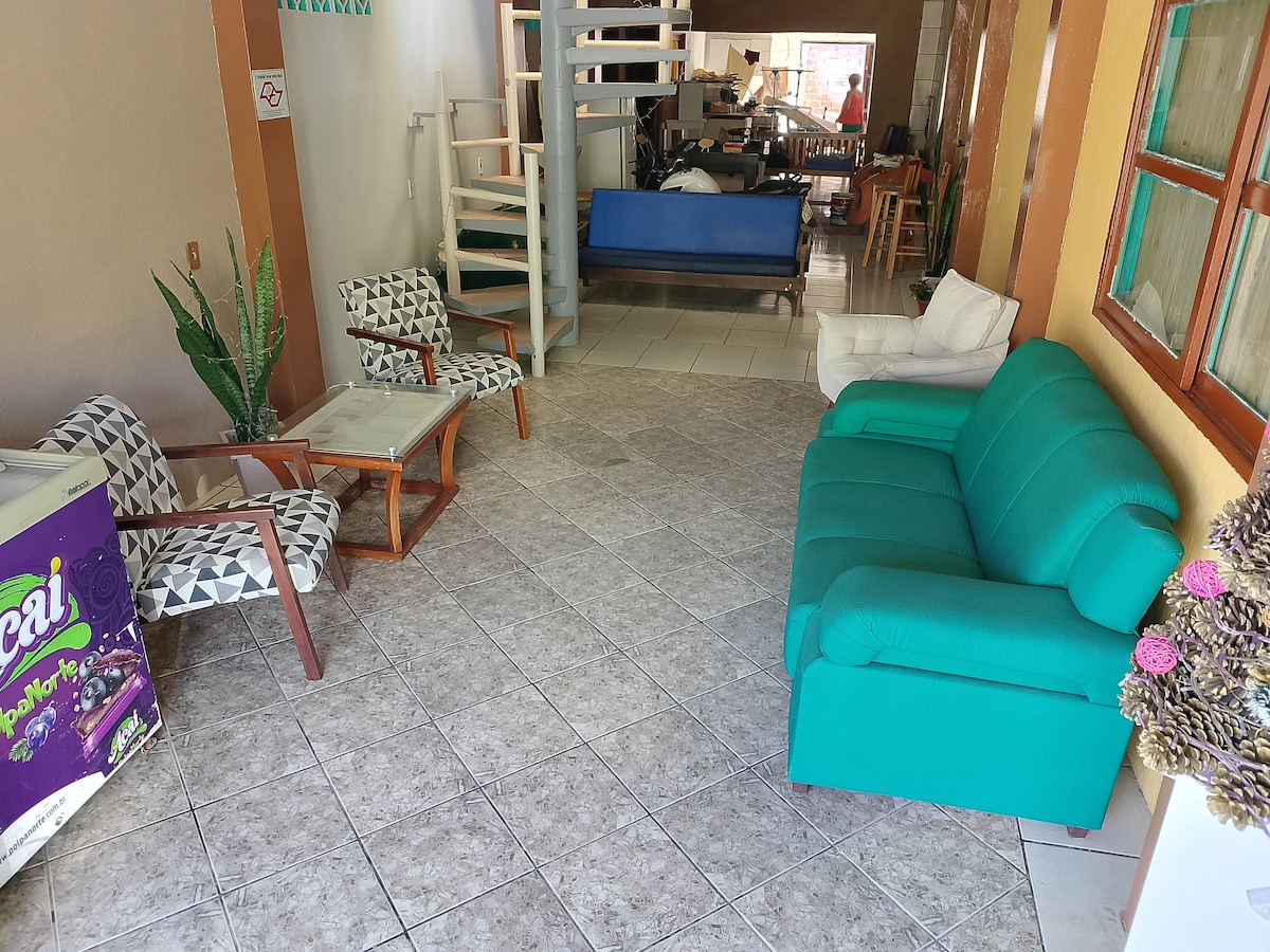 Venha com sua família se encantar com nosso espaço que fica a 1 QUADRA DA BEIRA MAR e do CENTRO da cidade. Cada quarto conta com 1 cama de casal e 1 de solteiro (uma é bicama); split ambos quartos. 1 sofá cama de casal. TV a cabo c/ canais infantis. Churrasqueira. Louça. Wi-fi. Piscina. Estadia p/ até 08 pessoas. AMBIENTE FAMILIAR. N aceitamos jovens p/ festas. A casa tem dois pisos. Hóspedes ficam em um espaço no térreo. Garagem no pátio. Proprietários no andar de cima com entradas independente