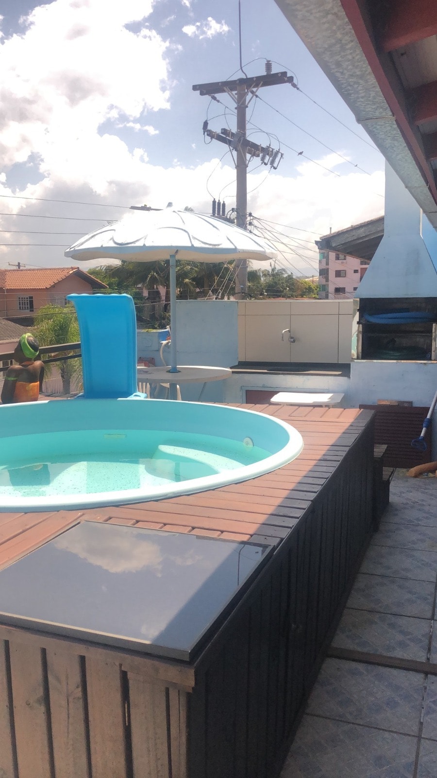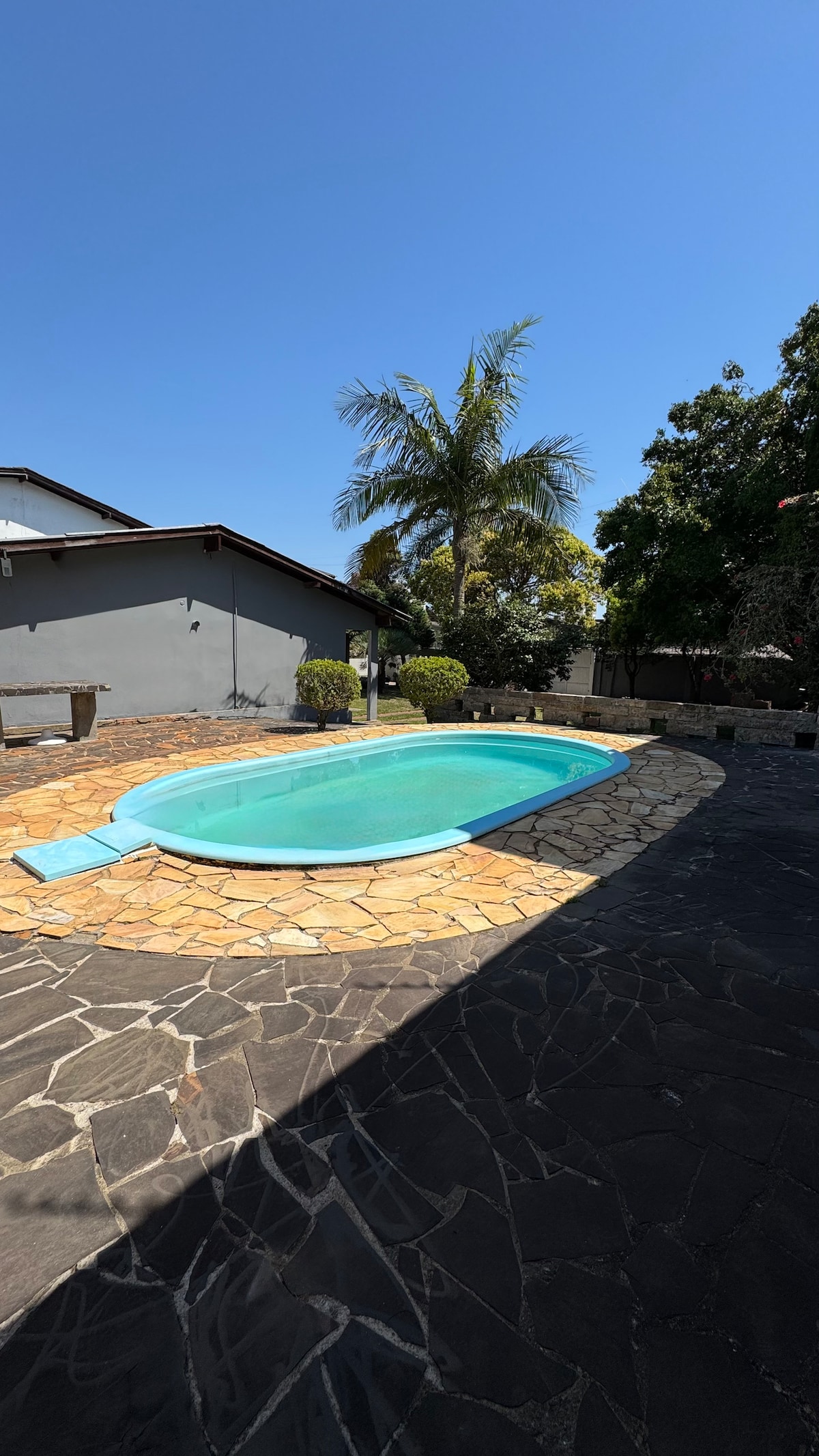 Casa com hidromassagem, piscina, pátio arborizado.