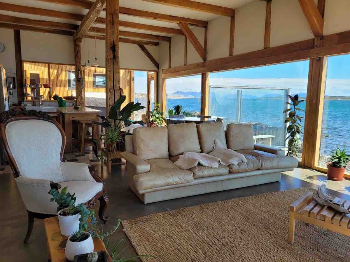 Amplia cabaña con hermosas vistas hacia el canal señoret, fiordos y glaciares, lugar perfecto para descansar, privacidad asegurada, espacios amplios, ubicada a 145 km de Torres del Paine y a 5 km y medio de Puerto Natales .