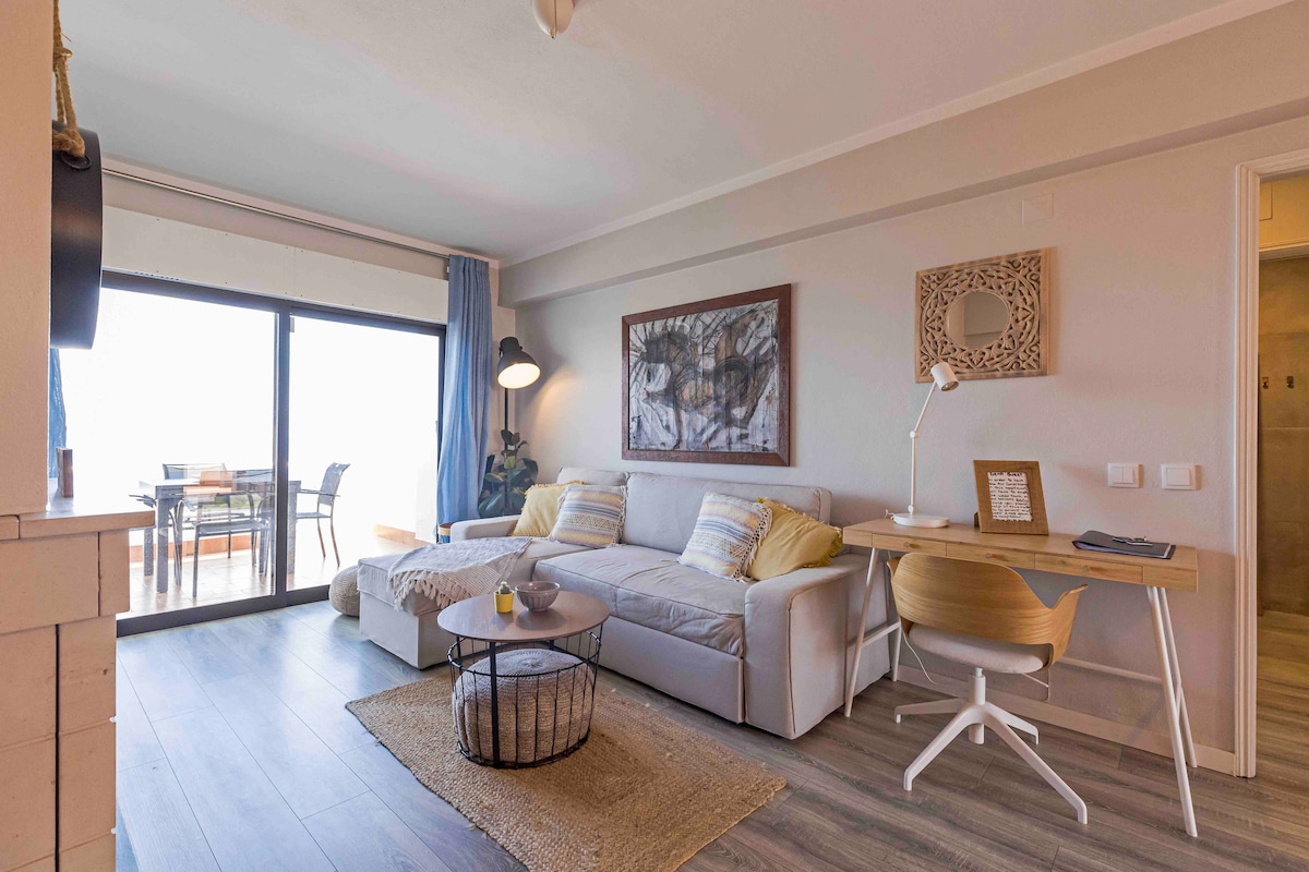 Magnifica vista sobre o mar de todos todos os ângulos da sala de estar e cozinha. Quarto principal virado a nascente:) Neste espaço umas confortáveis férias, com rápido acesso a restaurantes e take away que incluíem até comida vegetariana/vegan, pode fazer tudo a pé. Equipado para vos receber nas vossas férias, smart tv, wi fi ( fibra, alta velocidade). Extenso areal de praia, com rochas magnificas, a 5 m a pé. Ótimo para quem junta o trabalho com o lazer e conforto também.