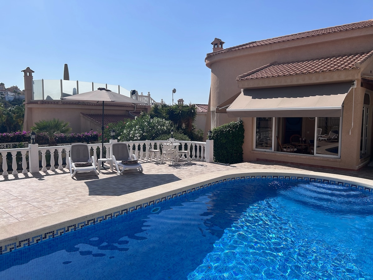 Private Luxury 5 Bedroom Villa Tropical Garden With Waterfall, large Pool, Full outdoor kitchen with seating area, Bar , BBQ, jacuzzi chill area, Rated best location in Torrevieja close to Beach, Waterparks, Bars & Restaurants, just 5 mins walk to Sea the beautiful ( Salt Lakes ) Your family will be close to everything when you stay at this centrally-located place Nature reserve featuring salt lagoons known for pink lakes. if 13 guests we will add more beds to the rooms