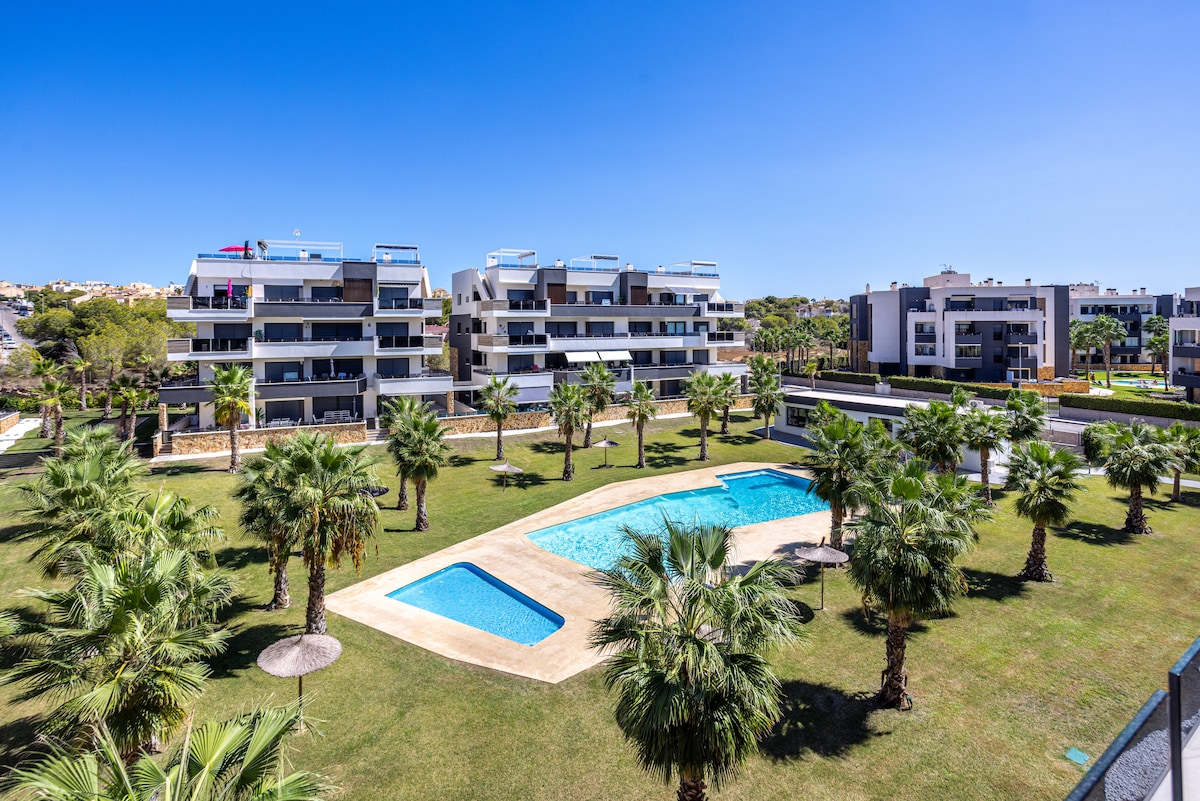 Welcome to Arbequina Apartment in Flamenca Village-just steps from Playa Flamenca, La Zenia Beach, and Flamenca Boulevard outdoor shopping center. This stylish, family-friendly apartment overlooks the courtyard and includes a dedicated secure underground parking spot. Enjoy multiple pools, hot tubs, a gym, a sauna, and a chill-out bar. With beach, shopping, and resort-style amenities all nearby, it's the perfect spot for all ages to relax, explore, and enjoy the Costa Blanca lifestyle.