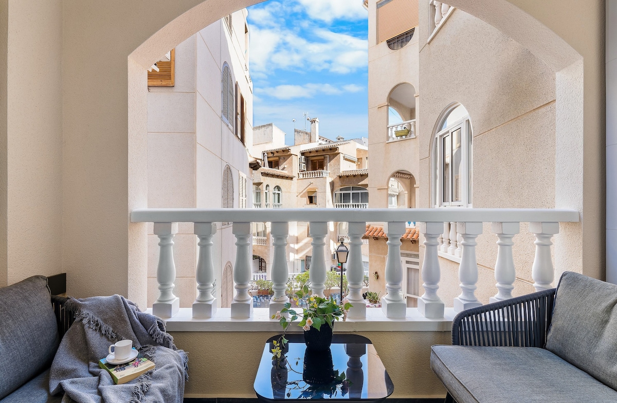 This Qhouse apartment offers an unbeatable location facing Playa del Cura beach in Torrevieja, which qualifies for the Blue Flag, known for its fine sand and resilience to easterly winds, making it perfect year-round. With around 100 sqm, it includes spacious bedrooms with sea views, a balcony for sunshine and relaxation, 3 bedrooms, and an open-plan kitchen. In winter, soak up the warm sunlight, while summer brings comfortable ventilation for enjoying breathtaking Mediterranean views.