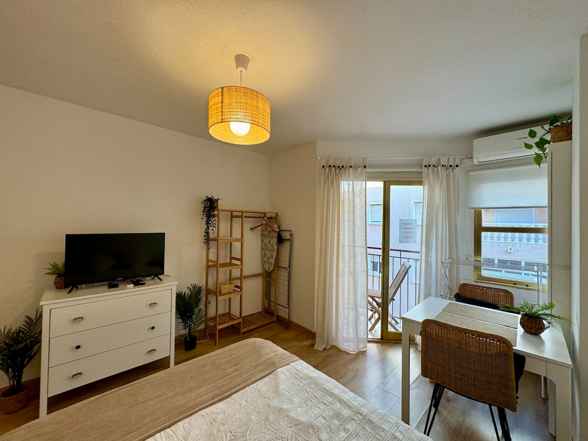 Bright and newly renovated Studio apartment located in the most touristic area of Torrevieja right on the promenade with views of Playa del Cura beach. It is suitable for 2 guests and it is fully equipped (appliances, washing machine / dryer, bed linen, towels, kitchenware) with WIFI and air conditioning. Due to the Spanish regulations we will need a photo ID or passport uploaded into the Airbnb platform before the check in day.