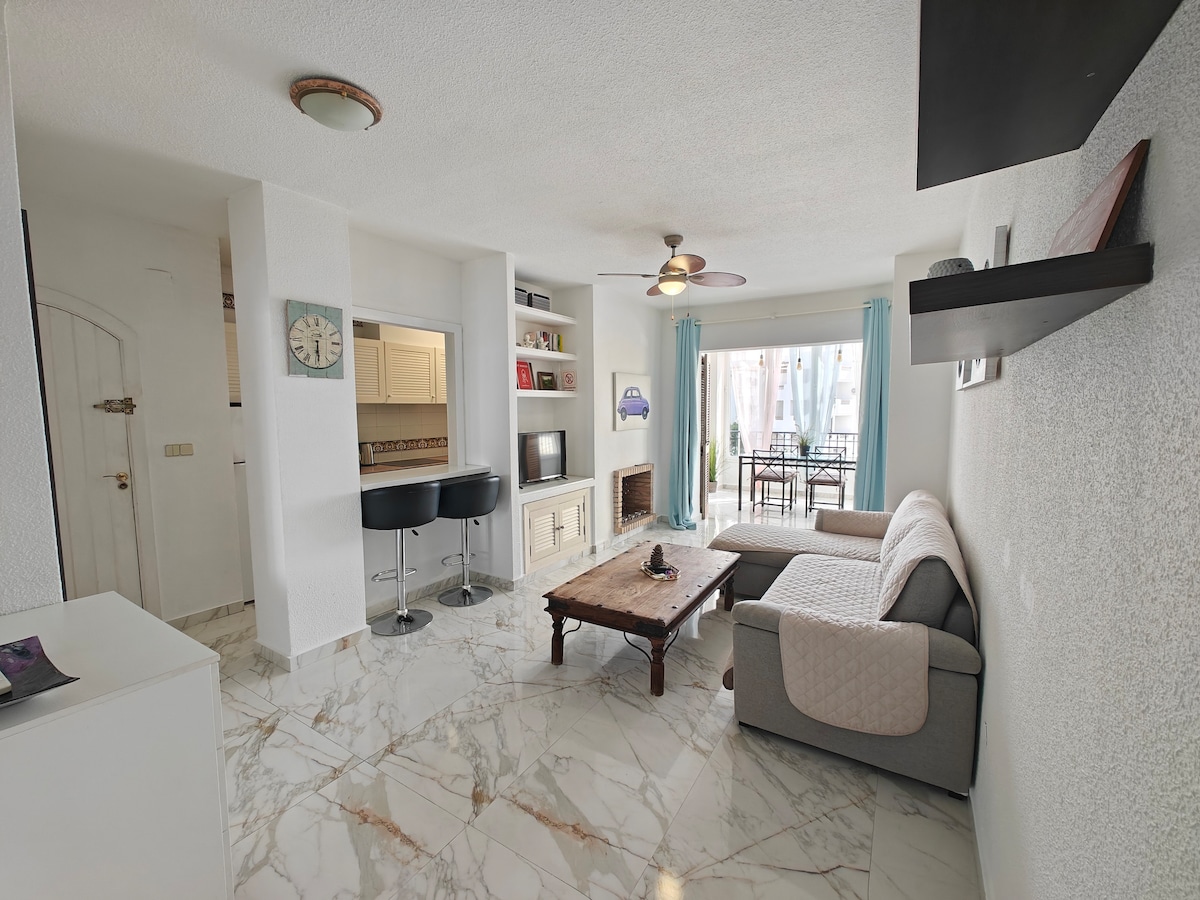 Cozy 1-bedroom apartment in the heart of Villamartin Plaza, Orihuela Costa’s vibrant hub. Steps from cafes, bars, restaurants, and shops—perfect for relaxing or enjoying the Spanish lifestyle. Spacious living room, fully equipped kitchen, bathroom with tub/shower and bidet, plus a relaxing enclosed balcony. Overlooks both the street and courtyard. Access to the beautiful Villamartin swimming pool included.