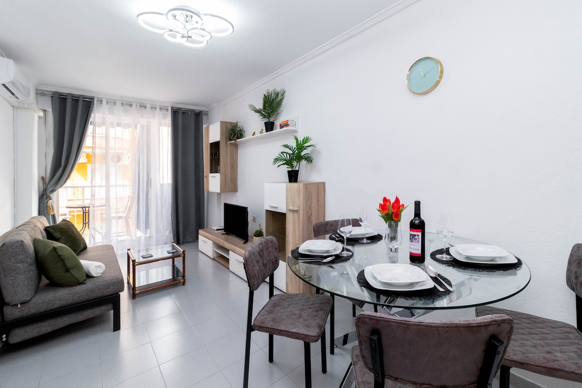 Din familj kommer att ha nära till allt när ni bor i detta centralt belägna boende t.e. super market, central busstationen, butiker och restauranger. Den lägenheten också passar till en sällskap av max 4 personer. Den lägenhet ligger in mysig område av Torrevjeja nära promenad och stranden Playa del Cura och Los Locos.