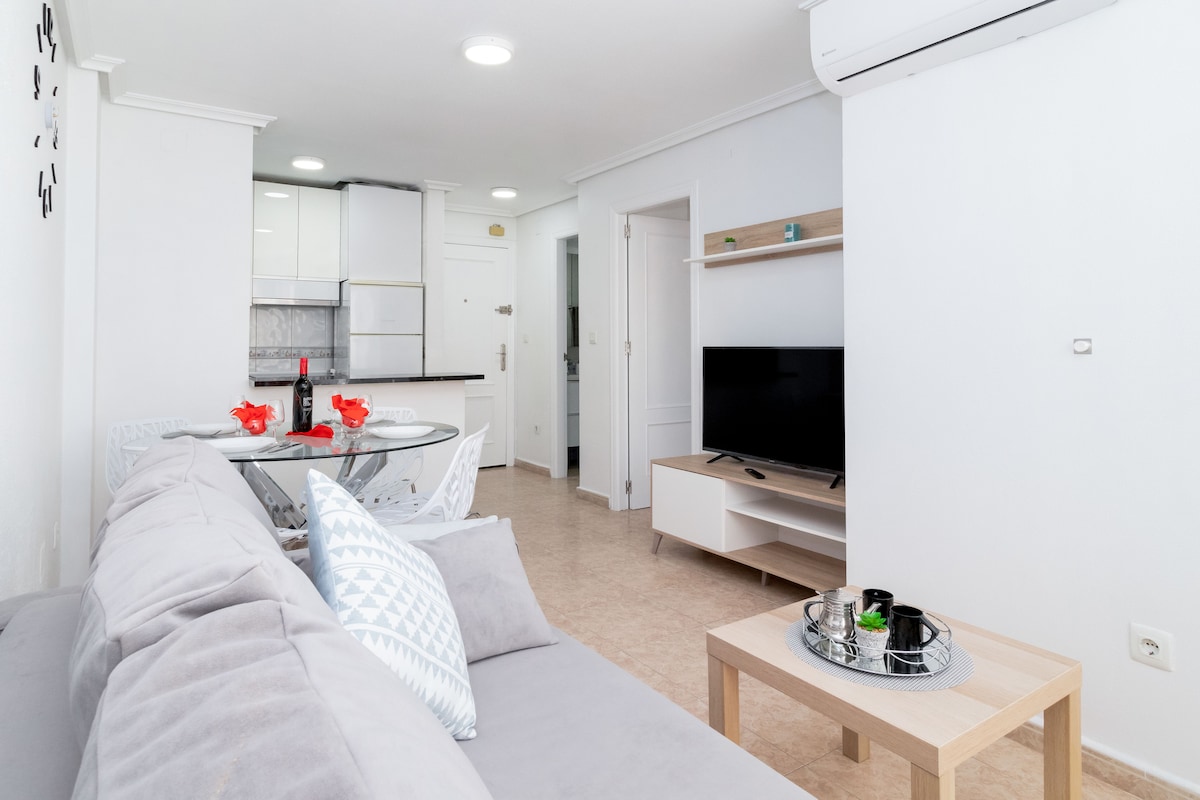 Welcome to our beautiful apartment 3 minutes walk from the best beach of Torrevieja - Los Locos! Supermarket Consum 5 minutes walk. This comfortable apartment is ideal for couples and families looking for a beach holiday in the sunny south of Spain. Fantastic location with access to the natural pools of Torrevieja. There are plenty of restaurants, bars and shops nearby, so you'll always have something to do.