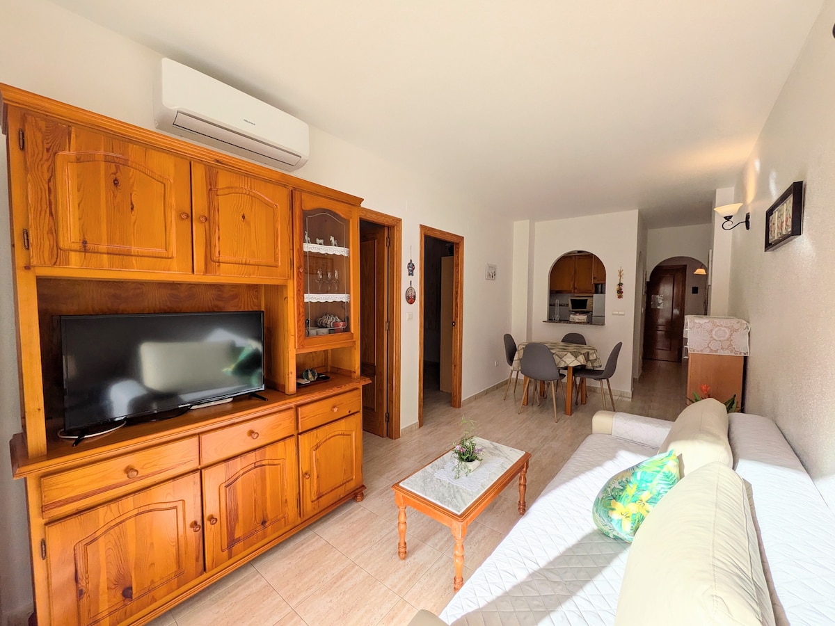 Lägenhet med stor balkong. Lägenheten har en fantstisk utsikt och ligger så pass nära havet att man kan höra vågorna. Här har du barnanpassad strand precis runt hörnet och flera andra stränder längs strandpromenaden. Intill lägenheten ligger en av Torreviejas bästa restauranger (Nautilus). Från lägenheten tar du dig smidigt till La Zenia för shopping eller in till Torrevieja för en kväll på tivolit. Gratis gatuparkering utanför. Det är installerat filter för dricksvatten. License: VT-492695-A