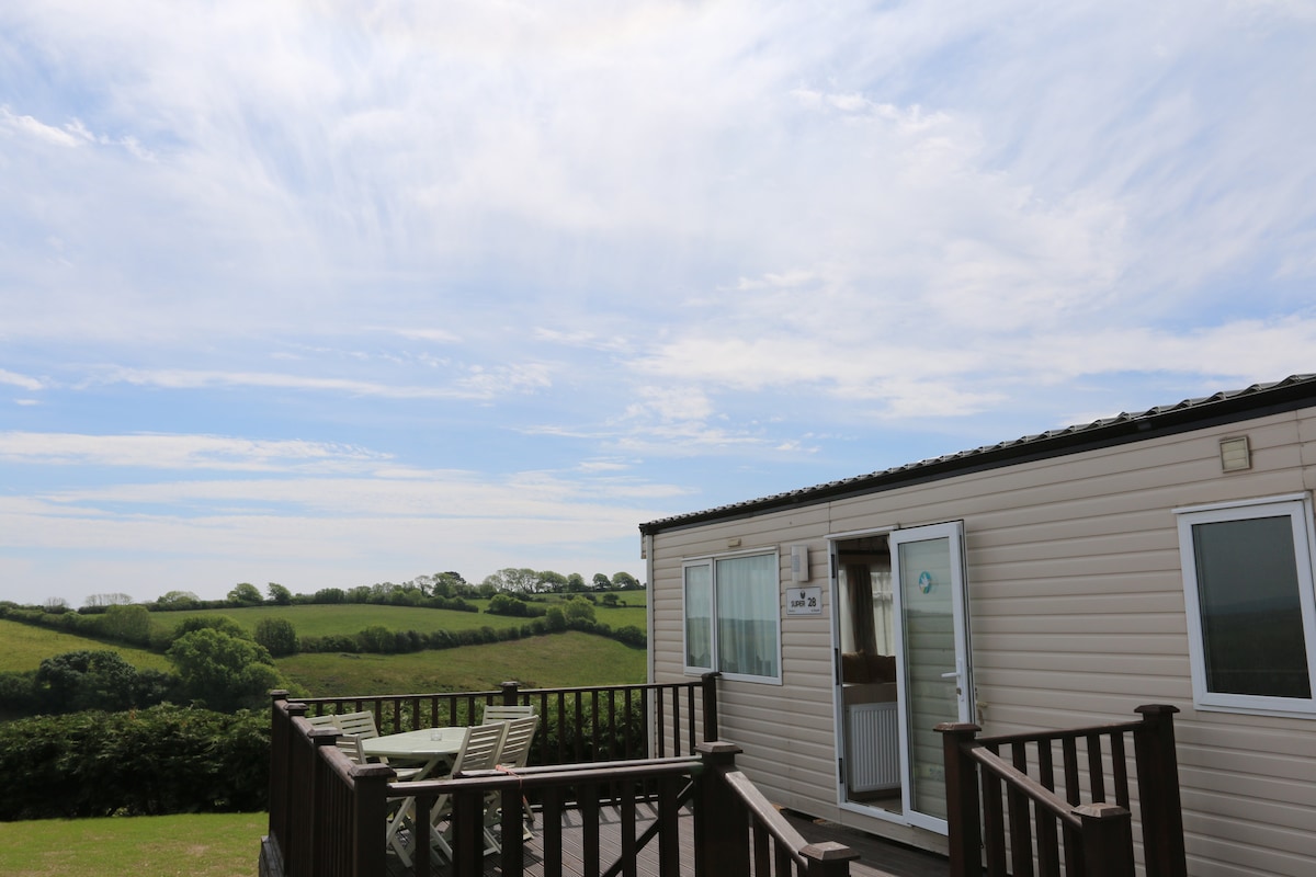 Our little chalet is located 3 miles away from the quaint seaside town of Bude. The holiday village is situated to look onto the scenic landscape of Widemouth Bay and easy access to stunning coastal walks. The chalet is a cosy 2 bedroomed self catering holiday hideaway with open living space and bathroom with central heating throughout. The complex itself has ample car parking, onsite amenities open April - November, outdoor children's play area and access to a path to the beach.
