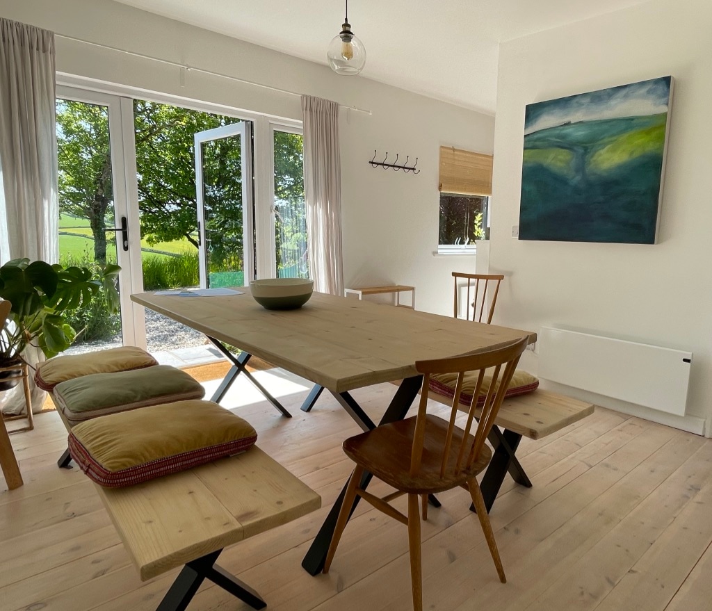 The Lugger is a stunning property completed in 2023. Situated up a private bumpy lane, once through the gates you will be free from the hustle and bustle and a lovely quiet space awaits you with off road parking and a sunny patio. It is located at the bottom of our garden, but has separate pedestrian and vehicular access. Only a 5 minute walk into Wadebridge and Camel Trail, the town boasts some lovely independent shops, restaurants, bars and bike hire.