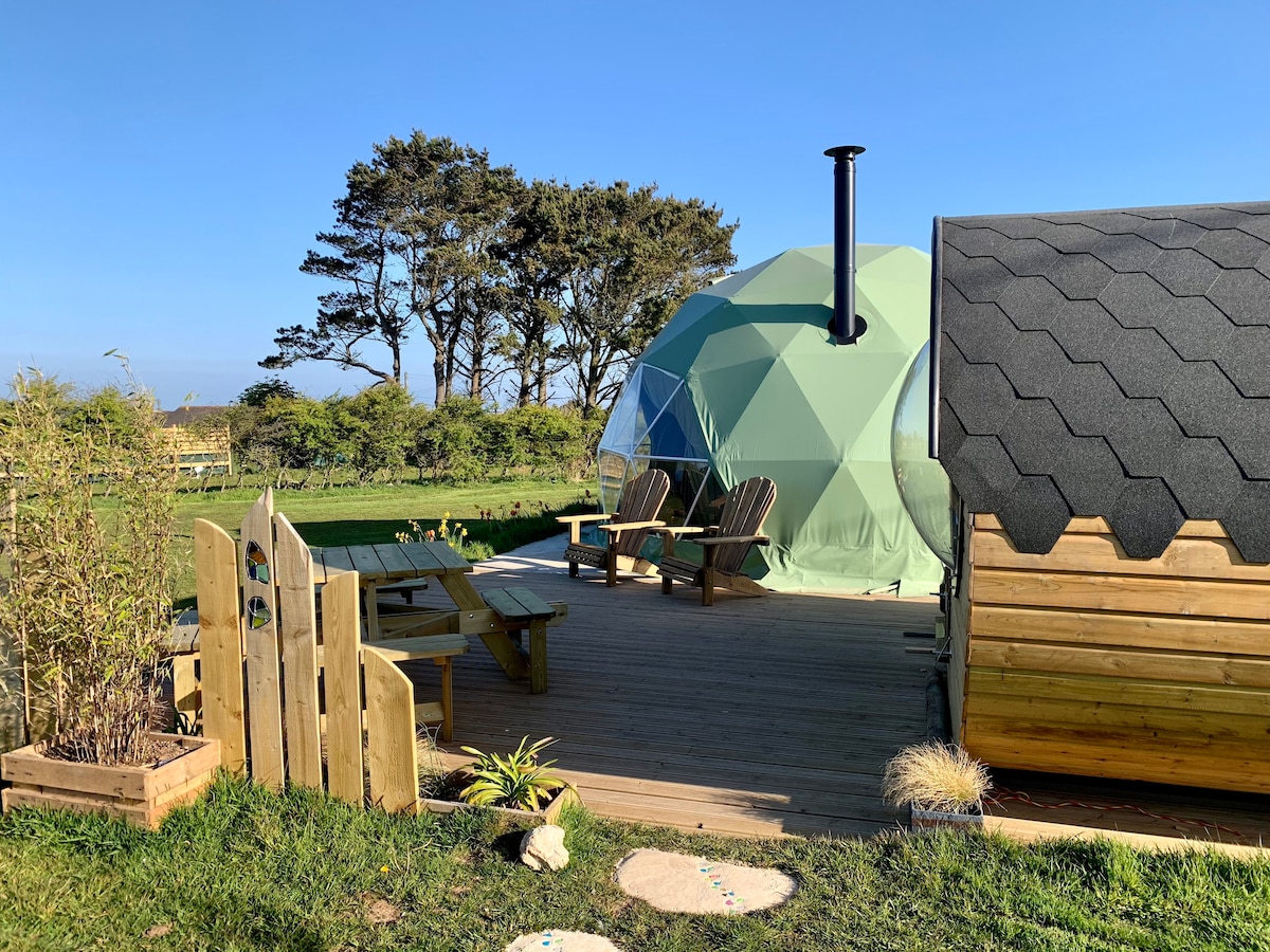 The Siw Lagen Dome is situated on a farm estate in mid Cornwall . Its isolated location is a perfect setting to relax after a day on the beach or visiting a local attraction. The Roseland beaches, which are a short car journey away, are perfect for a young family. if you enjoy the surf, good beaches are 11 miles to the north. Eden Heligan and the historic port of Charlestown aren't far either. The Dome is supplied by the farm wind turbine so all electricity used is fossil free.
