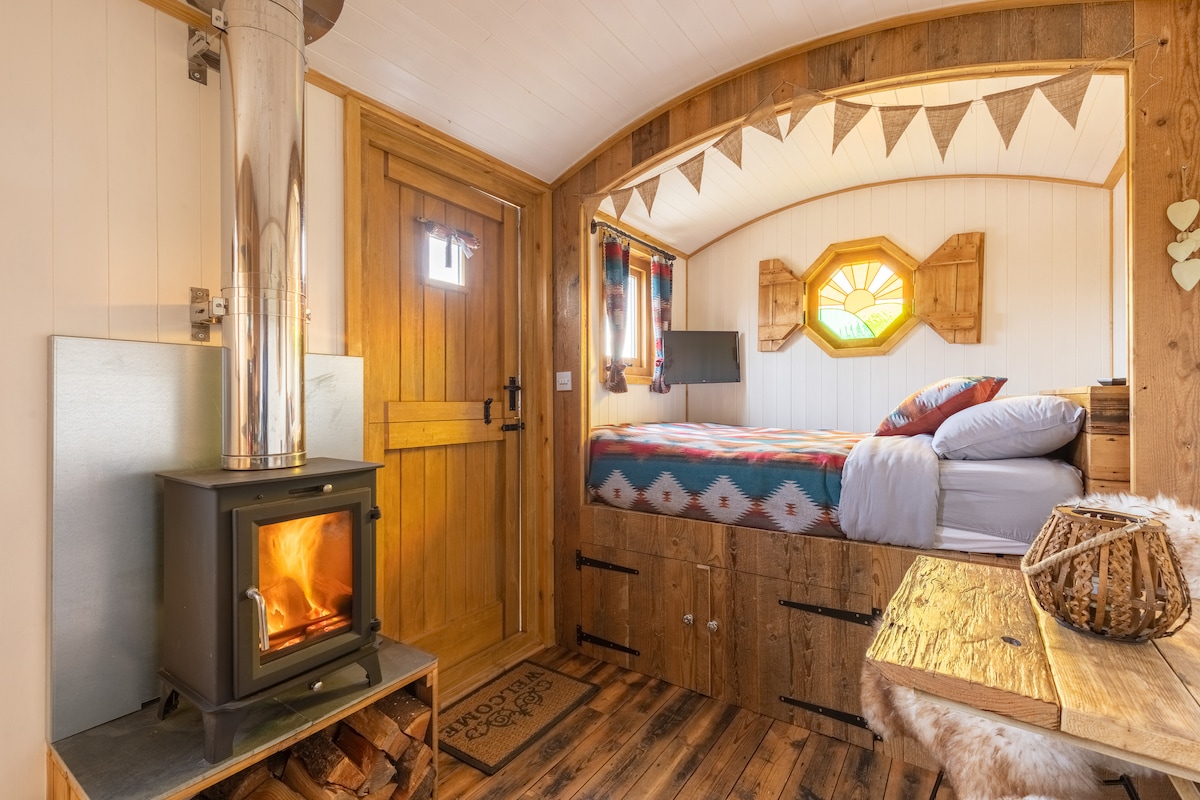 宁静的豪华露营马车,远离喧嚣,有桑拿房