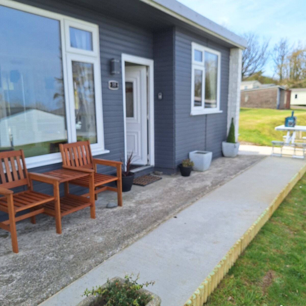 Privately owned chalet in Bideford Bay park. Quiet, convenient location with sea view. Close to on site shop, play area, indoor and outdoor swimming pools. (Note: these facilities only available from Mid March to October) The park (8 miles from Bideford) is close to beaches and local attractions (by car) and is a perfect base for exploring the area. The chalet has 2 bedrooms and an open plan kitchen/living area Bathroom has shower/basin/toilet. Double glazing throughout. Panel heaters.