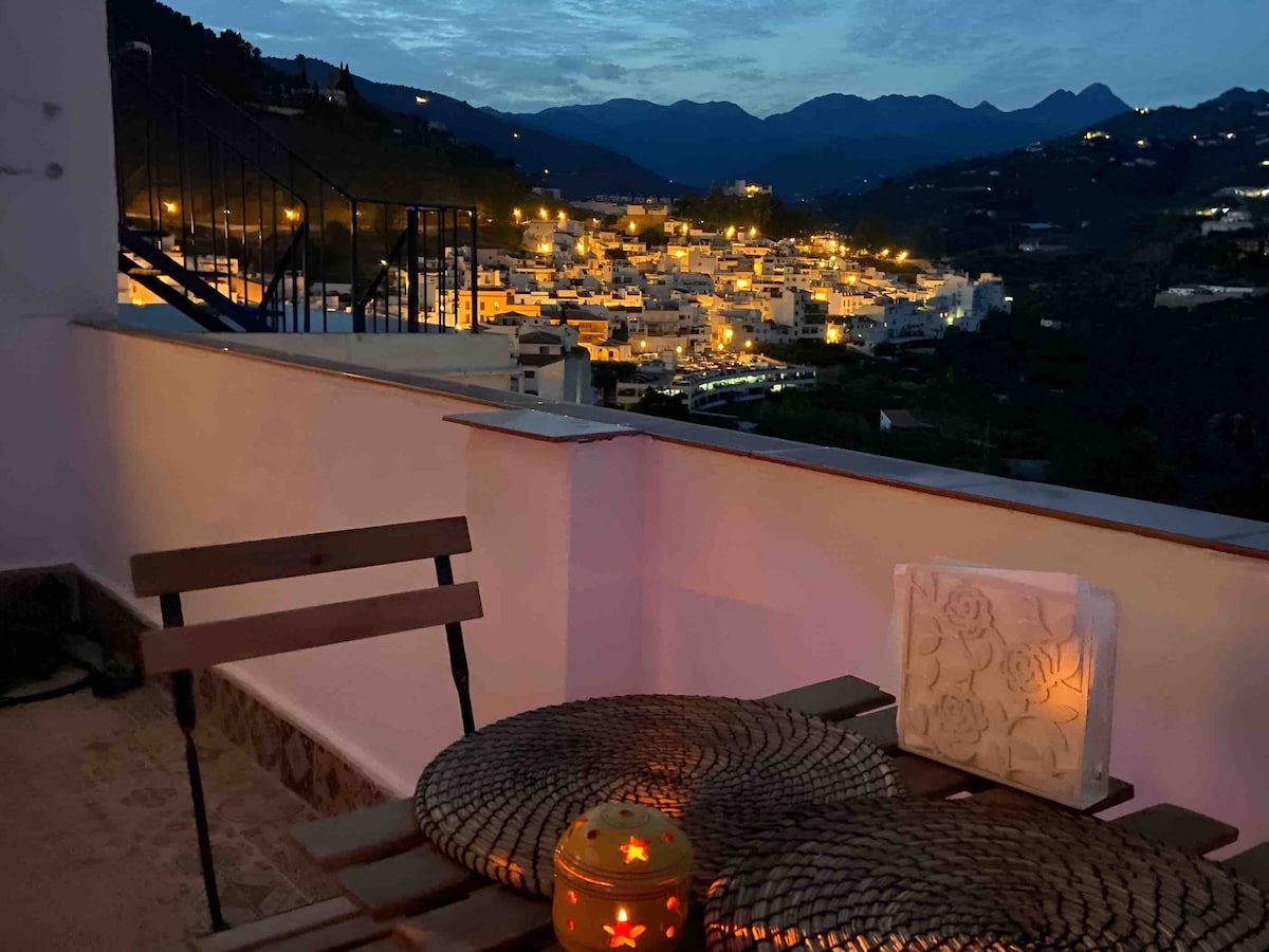 Welcome to our accommodation in Torrox Pueblo, a space of tranquility and elegance. Enjoy a exquisitely decorated house with a spacious kitchen equipped with high-quality appliances. The bedroom provides you with a window and balcony overlooking the tranquility of the valley. Furthermore, the marvelous terrace offers views of the mountains and countryside, where you can relax. Just an 8-minute drive away, you can enjoy the beaches and then return to the village to savor the tranquility.