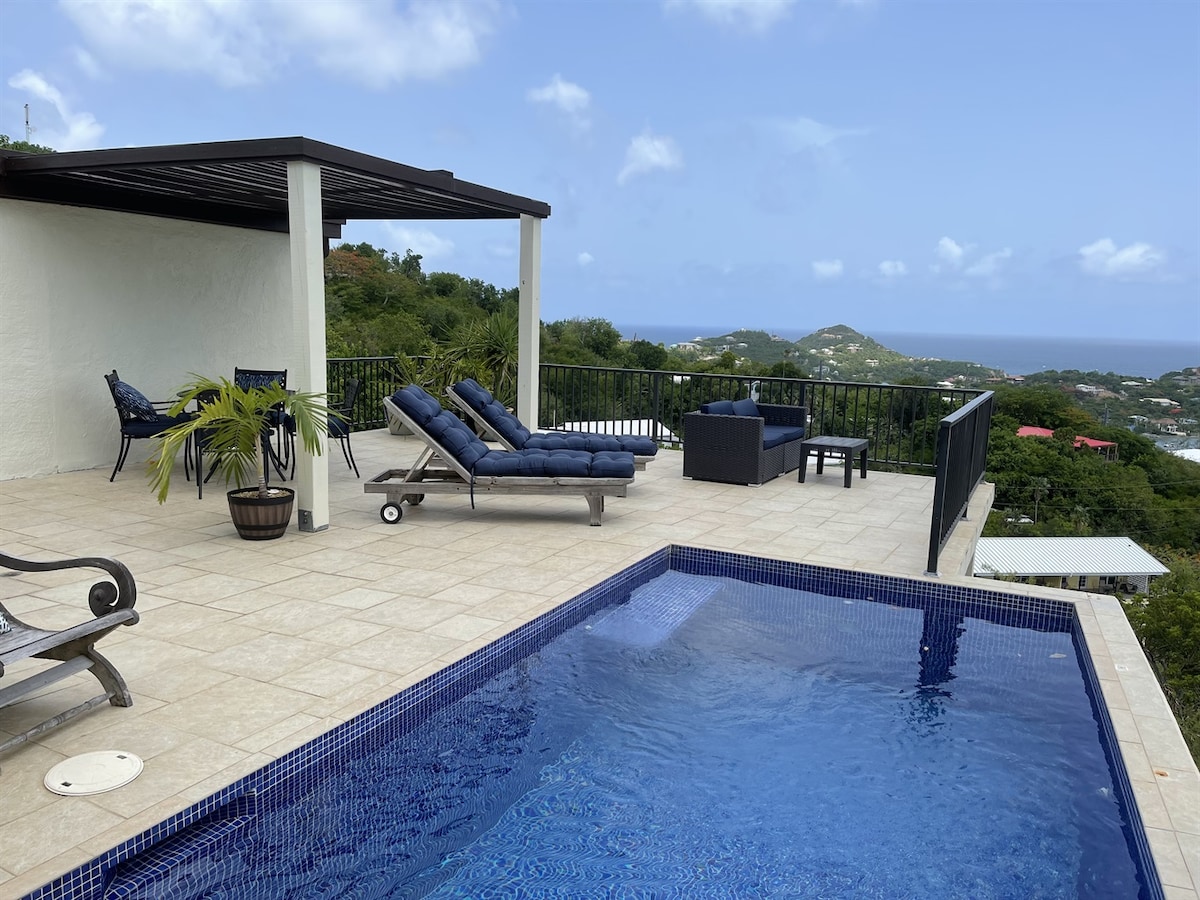 Into the Mystic Lower Suite is a beautifully finished suite located in peaceful Coral Bay, St. John. Offering every amenity you need for a perfect vacation - Salt water pool, high speed Wi-Fi, DISH TV, electric grill, solar with back up batteries & more. Our lower-level suite is your own private escape after a day exploring St. John's beaches and hiking trails. We offer a beautiful indoor living space & a peaceful balcony which showcases our view of Coral Bay & beyond.