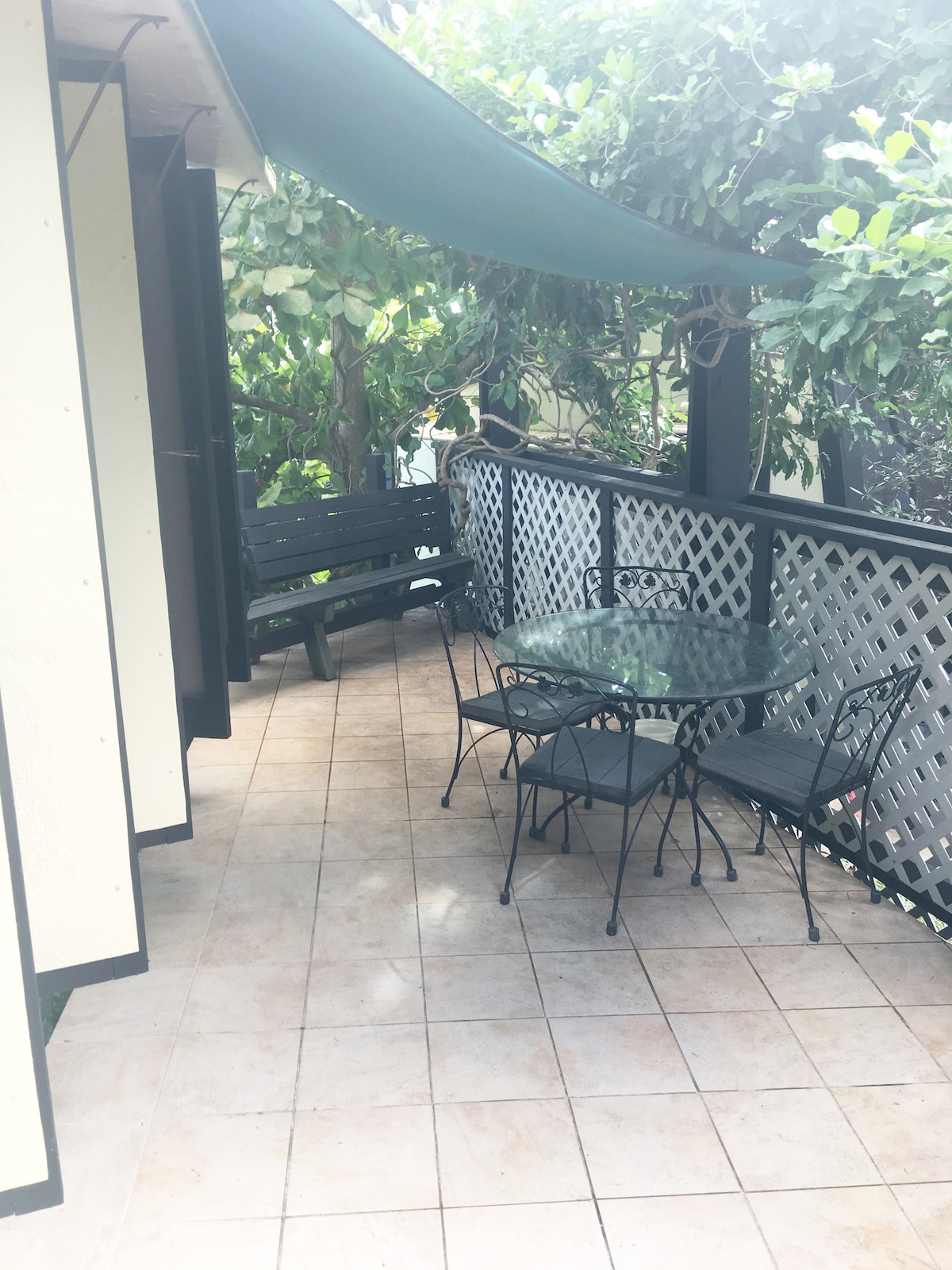 Skipper is a stand alone cottage: a large 450 sq ft efficiency with 50 sq ft deck. Queen bed, mattress is a Marriott Silver Beauty Rest & full futon along with full kitchen & shower bathroom. The property is all fenced for Skipper, my Portuguese Water Dog. Skipper was the captain of our boat Skedaddle. The yard is very lush & green, seems like a mini rain forest in town. Our place is 'old' Caribbean, wooden cottages, no concrete. Skipper & Skedaddle are two identical cottages next to each other.