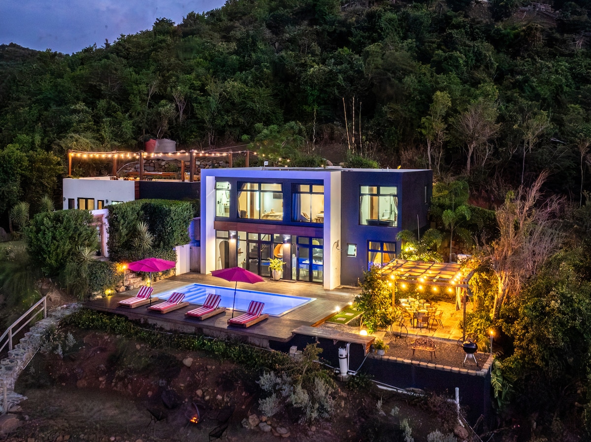 VIewtiful is high on Mamey Peak, midway between Cruz Bay and Coral Bay with spectacular views of St. John and the British Virgin Islands. The view extends from Jost Van Dyke in the north, then east and south across Coral Bay, and the remaining British Virgin Islands and Bordeaux Mountain. Perched over the trees it always has a great breeze. It is less than a mile to the National Park Beaches of Francis and Maho Bays.