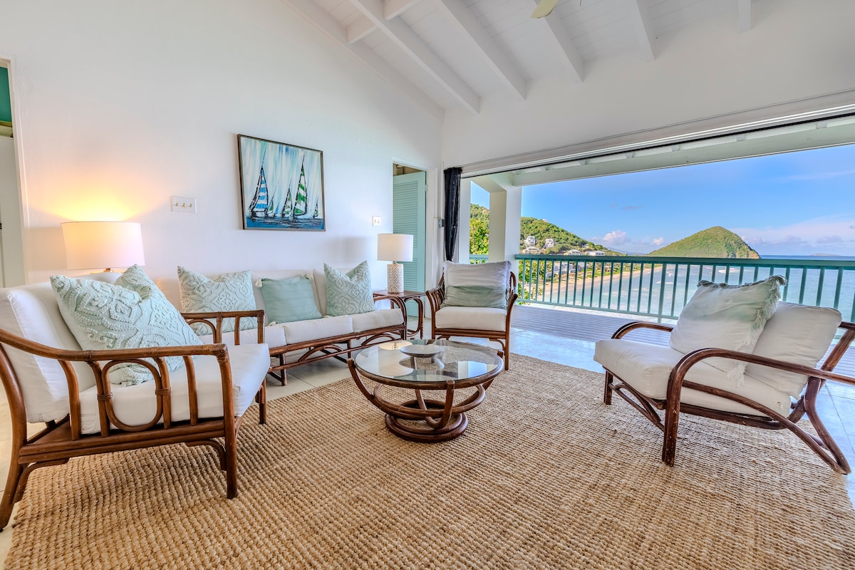Wake up to panoramic Caribbean views in this elevated Penthouse Oceanview Oasis in Coral Bay. With an expansive private deck facing east over trade winds, sunlit interiors, and full AC throughout, this is the perfect escape for couples or honeymooners seeking serenity, spectacular sunrises, easy access to beaches, snorkeling, and top Coral Bay dining. Every detail — from the king-size bed overlooking the sparkling water to the BBQ grill at sunset - is designed for relaxation and lasting memories