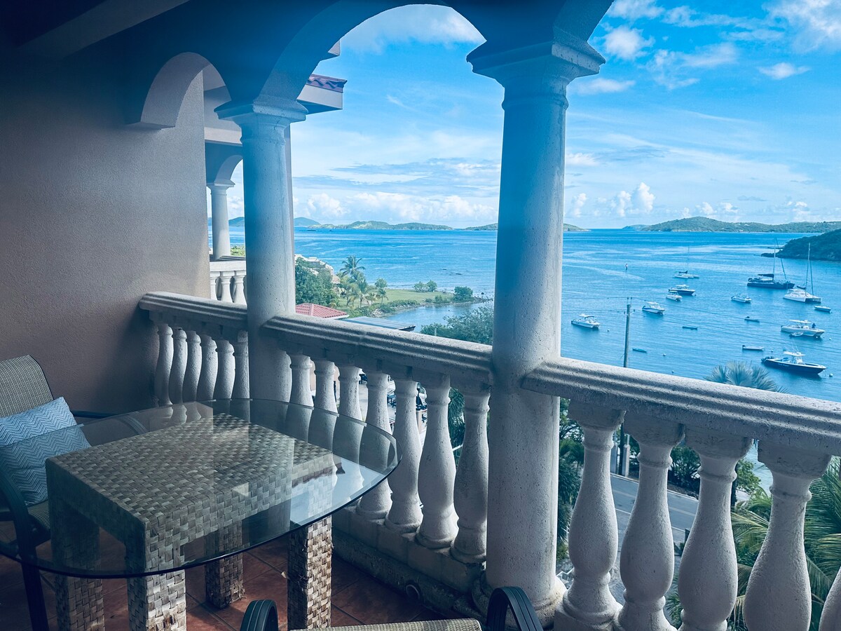 FRESH AND UPDATED studio unit in the heart if Cruz Bay at Grande Bay Resort. King bed studio suite with a full foldout sofa, Kitchenette & living room seating area, washer dryer. Amazing view from inside & balcony perched high up on the hill over looking Cruz Bay and surround. Great for a honeymoon, anniversary, or any getaway! Very clean unit & well appointed furnishings. . Wake up to the Caribbean Blue water & sun! Please note. PARKINGis NOT included-paid parking offsite or taxis