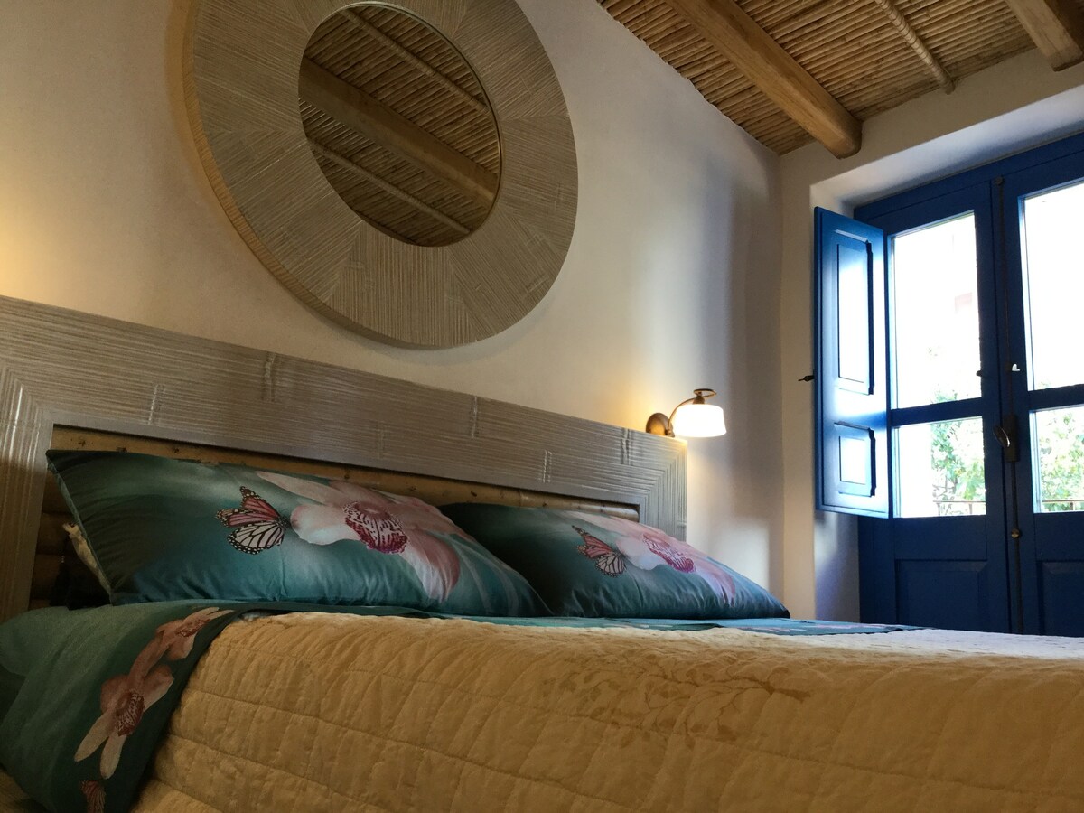 La camera offre un comodo letto matrimoniale, WI FI, aria condizionata di ultima generazione, TV LED, due prese USB per carica cellulari, spazioso bagno privato con doccia e asciugacapelli. All'esterno c'è uno spazio privato con due lettini e un tavolino immerso nel verde. Per soggiorni lunghi è disponibile la lavatrice e su richiesta c'è la possibilità di avere delle bici.
