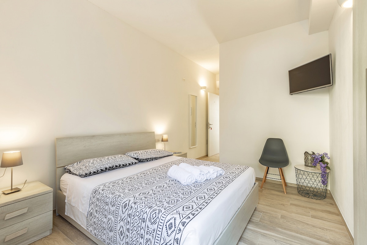Vi accoglie in camera matrimoniale, climatizzata con letto alla francese. Compresi: Tv, Wi-Fi, biancheria, set-cortesia, colazione self-service Italiana.
