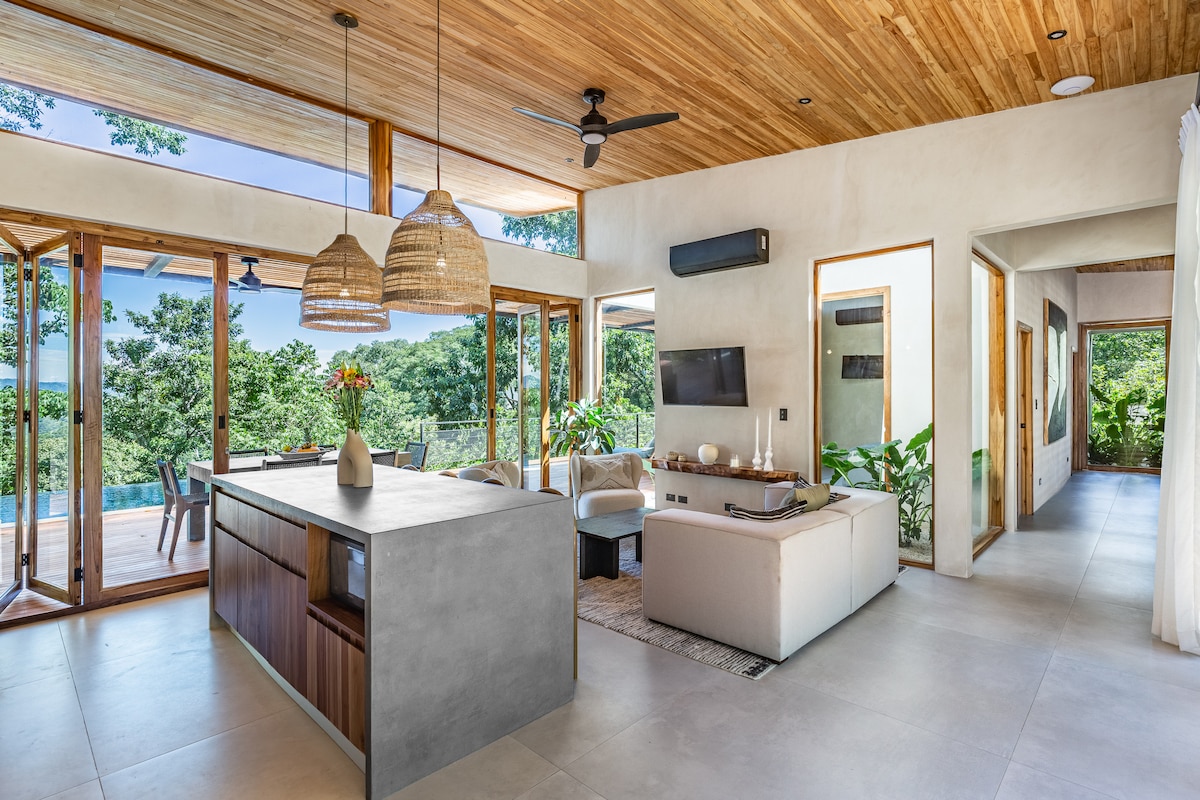 THE ROCK HOUSE is a contemporary style home boasting EXQUISITE VIEWS OF THE PACIFIC. This two-story house sits on a 3 acre hillside property surrounded by the jungle providing a very PRIVATE and TRANQUIL backdrop for your tropical getaway. With beautiful indoor/outdoor design elements and just steps from the INFINITY POOL, the house features a spacious kitchen, dining area, living room and bathroom on the first level and TWO MASTER SUITES with private bathrooms and a balcony upstairs.