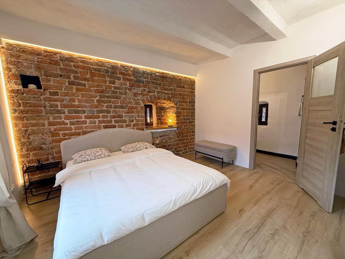 Dwupoziomowy apartament z tarasem w centrum malowniczej Toruńskiej Starówki. Projekt tego miejsca nawiązuje do historii związanej z życiem Mikołaja Kopernika. Jest tu połączenie nowoczesności i elegancji ze średniowiecznym charakterem domu. Mieszkanie pomimo centralnej lokalizacji, jest bardzo ciche, ponieważ okna nie wychodzą na główna ulicę. Czyni to je miejscem idealnym na relaks i ucieczkę od zgiełku bez wychodzenia ze Starego Miasta. Taras na dachu jest wyjątkowym atutem tego mieszkania.