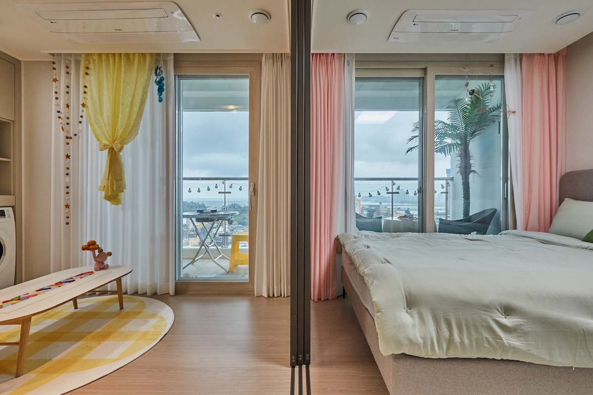 [悠闲退房]ㅣ海景卧室ㅣ距离海滩1分钟ㅣ中央市场ㅣ速草ㅣ1楼便利店
