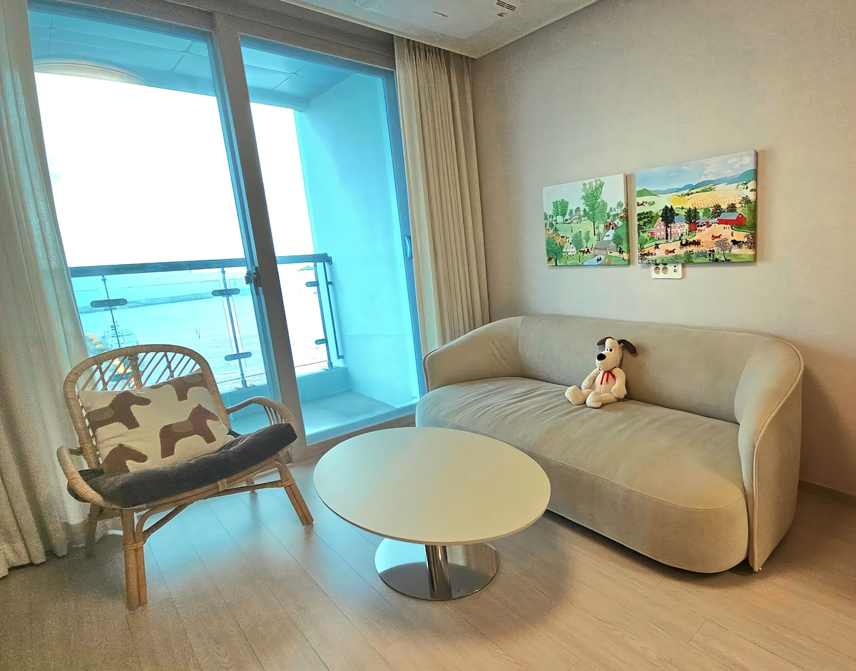 [오션정면뷰]눈뜨면바다1분!저상소파로안락함을주는!등대해변!포차거리! 힐링숙소!영랑호
