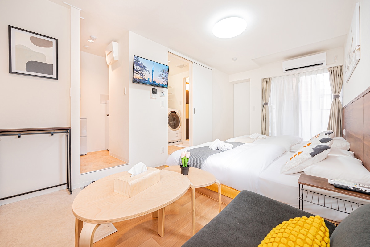 303房间。押上站6分钟,近晴空塔,直达浅草、上野、银座、涩谷、机场。最多3人。行李寄存。