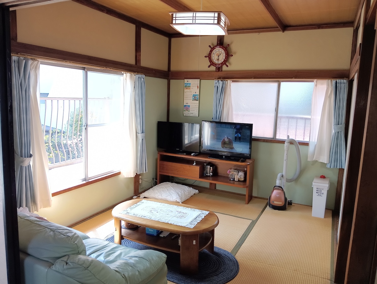 **This is a shared house. ** **Host Tomoe and her dog as well as co-hosts are living here.** You will live together with the hosts and other guests, sharing the kitchen, living room, bath and toilets. There are 3 private guest rooms altogether. It's a dog-friendly house. Our guest house is a 2-min. walk away from Zaimokuza beach! You can take a warm shower outside after swimming in the sea. Beach chairs, tents, BBQ can be rented.