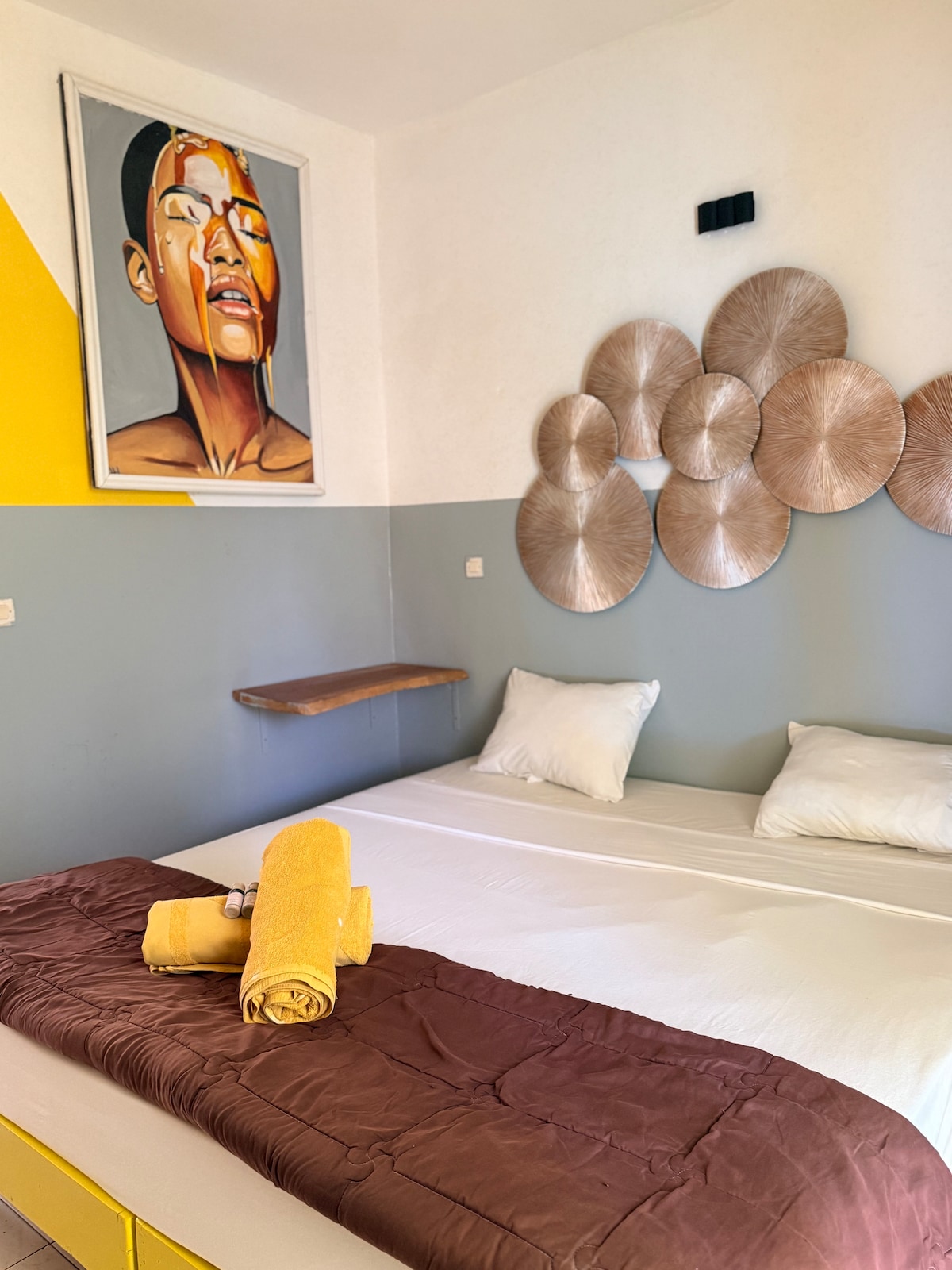 Charmant studio indépendant à Saly Niakh Niakhal, idéal pour un séjour en couple. Il dispose d’un lit double, d’une cuisine équipée et d’une salle de bain privée. Vous profiterez d’un agréable espace extérieur commun couvert avec canapé et grande table, ainsi que de la piscine commune. À 5 min de la plage et proche des commerces, ce studio offre confort, intimité et convivialité dans un cadre paisible.