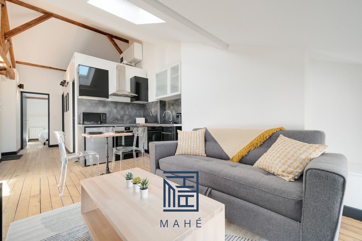 Un design unique dans une configuration atypique de type souplex. Venez découvrir ce superbe petit loft de 30 m2 situé en plein cœur de l'hyper-centre, à deux pas de la Place Stanislas et en face de la rue Gourmande. Laissez-vous séduire par la déco néo-rétro baignée dans l'univers du voyage, le tout sous le regard d'une Moto Guzzi de 1974. L'immeuble est adossé à d'anciennes fortifications de la ville de Nancy où vous trouverez dans la chambre chaque pierre signée par le tailleur de l'époque.