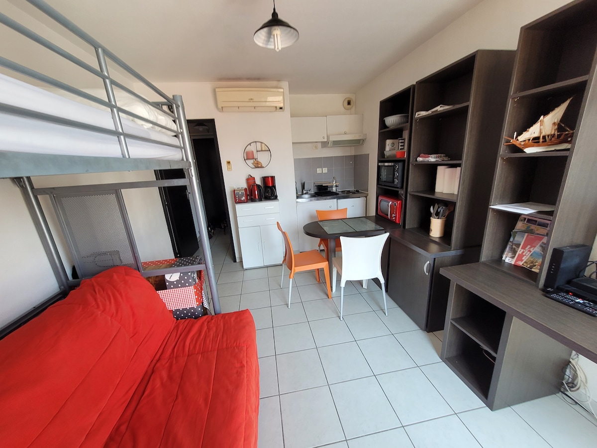 Studio climatisé, calme, tout confort, dans maison de village, rue piétonne à 150 m du port. 18 m² plus mezzanine et petit balcon composé comme suit : Une pièce principale : un canapé clic-clac, TV led, la fibre Free,une table et 4 chaises Une cuisine américaine : Lave-linge, lave-vaisselle ,réfrigérateur - congélateur, micro-ondes, mini-four, plaques électriques,cafetière, bouilloire Salle d’eau : Un lavabo, une douche, sèche cheveux. Un coin nuit en mezzanine : Un matelas bultex en 140.