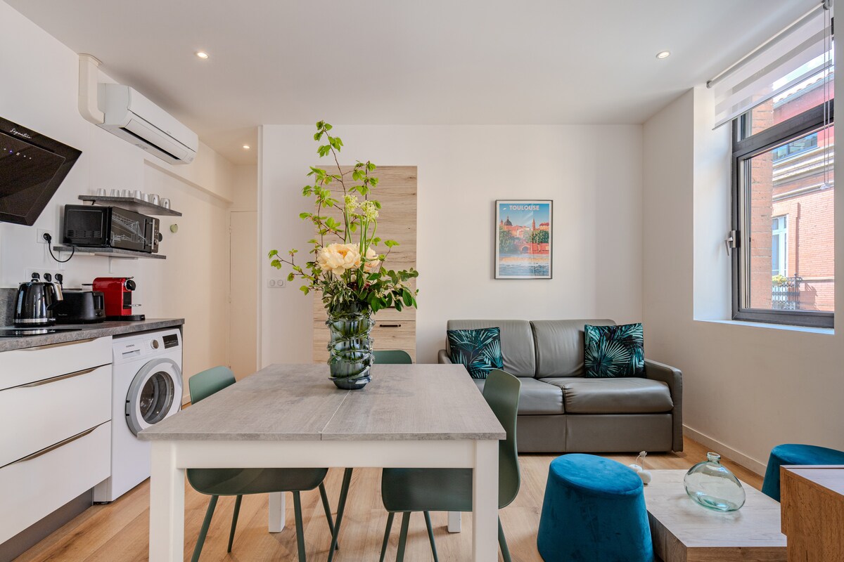 Idéalement situé au cœur de Toulouse, notre appartement offre une localisation idéale pour toutes vos activités, tout en assurant une atmosphère paisible. Le logement est situé en retrait de la rue, offrant un calme incroyable malgré sa localisation très centrale. Une fois installé, vous pourrez pleinement profiter de notre charmante ville rose à pied, sans vous préoccuper des transports. L’arrivée est autonome, ce qui vous permet d’arriver sans contrainte d’horaire.