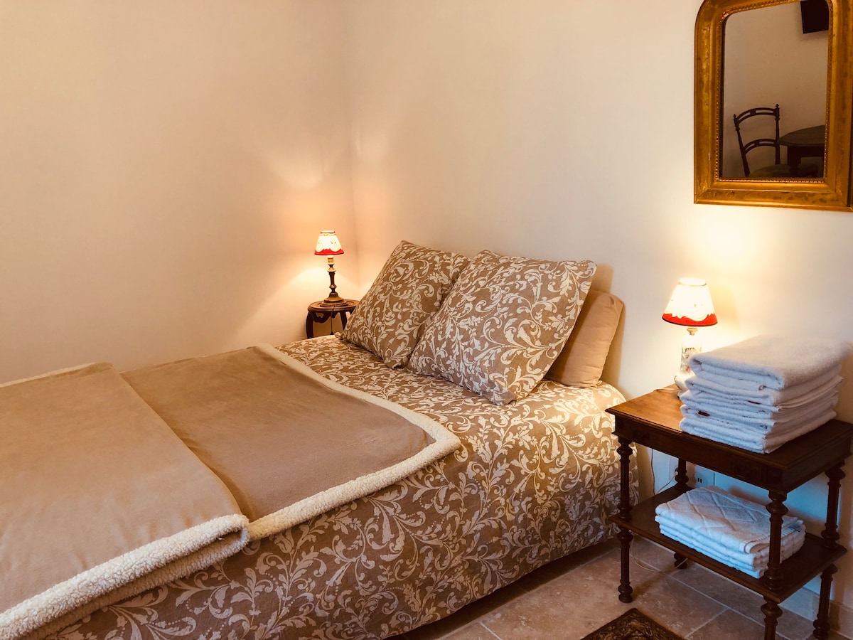 La CHAMBRE (sans cuisine) est entièrement autonome, toilettes et salle de bain privatives, accés par une entrée réservée au logement. Elle se situe dans une partie de notre maison et peut accueillir idéalement 2 personnes (jusqu'à 3 si besoin, supplément de 10€/nuit). Dans le cas où le 2ème couchage (fauteuil convertible en lit d’appoint 1 place) est nécessaire, même à 2 voyageurs, 10€ supplémentaires vous seront demandés à votre arrivée. La chambre est à rendre propre (ou forfait ménage 10€ )
