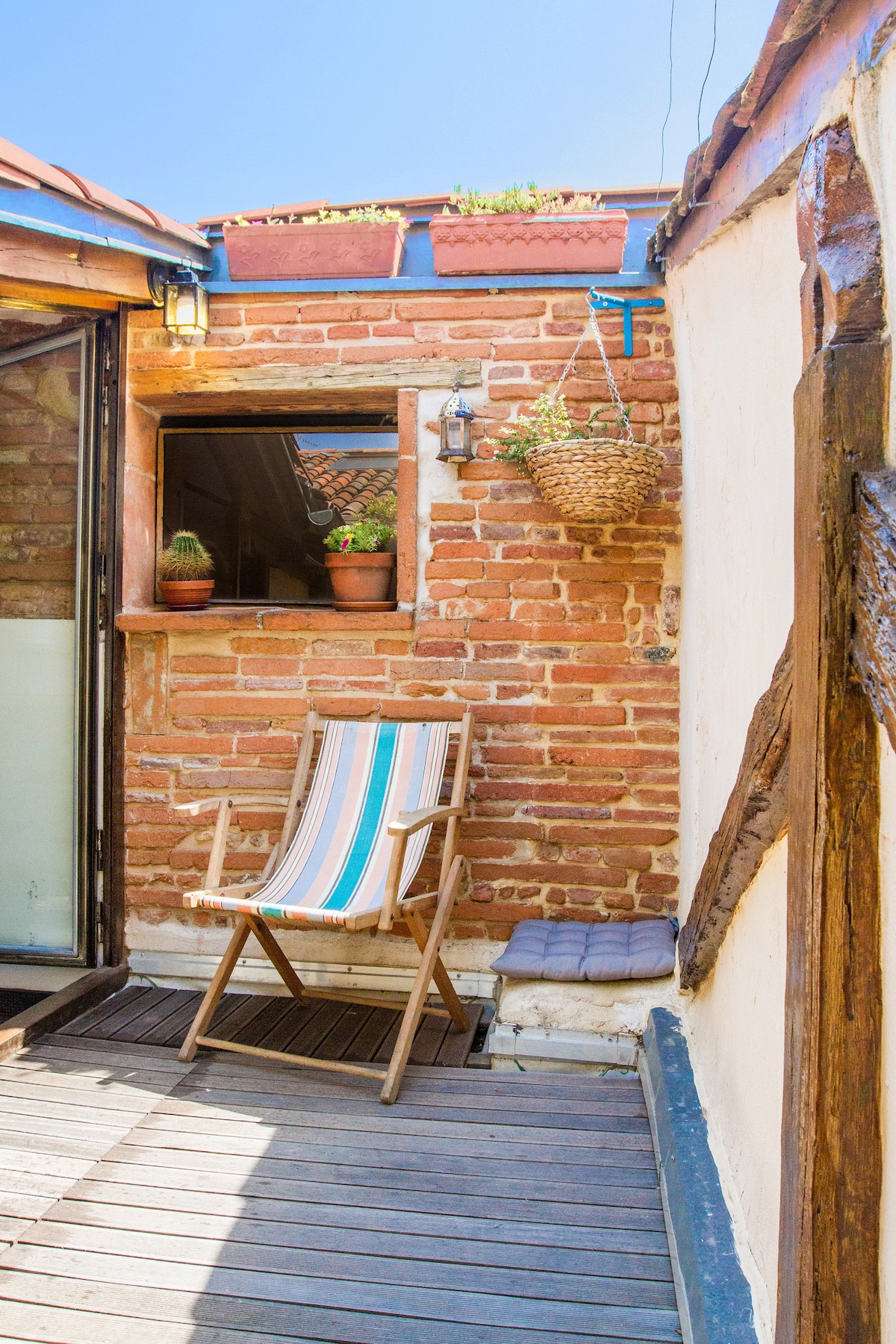 Situé au 1er étage d'une véritable Toulousaine, au cœur du charmant quartier des Chalets, T3 rénové, parquet d'époque et hauteur sous plafond. Cuisine entièrement équipée WiFi et climatisation haut débit. Wc séparé, salle de bain . 2 chambres avec lit en 140, linge fournis , balcon doté d'une table et chaise longue avec vue sur les toits toulousains. Situé à 5mn de la basilique St Sernin, 6 mn à pied du capitole. 3 mn du métro jeanne d'arc . Gare SNCF 15 mn à pied. Marché à 2mn