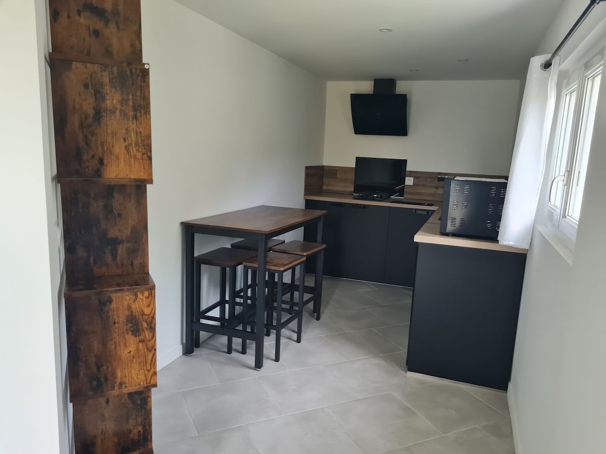 La CHAMBRE (sans cuisine) est entièrement autonome, toilettes et salle de bain privatives, accés par une entrée réservée au logement. Elle se situe dans une partie de notre maison et peut accueillir idéalement 2 personnes (jusqu'à 3 si besoin, supplément de 10€/nuit). Dans le cas où le 2ème couchage (fauteuil convertible en lit d’appoint 1 place) est nécessaire, même à 2 voyageurs, 10€ supplémentaires vous seront demandés à votre arrivée. La chambre est à rendre propre (ou forfait ménage 10€ )