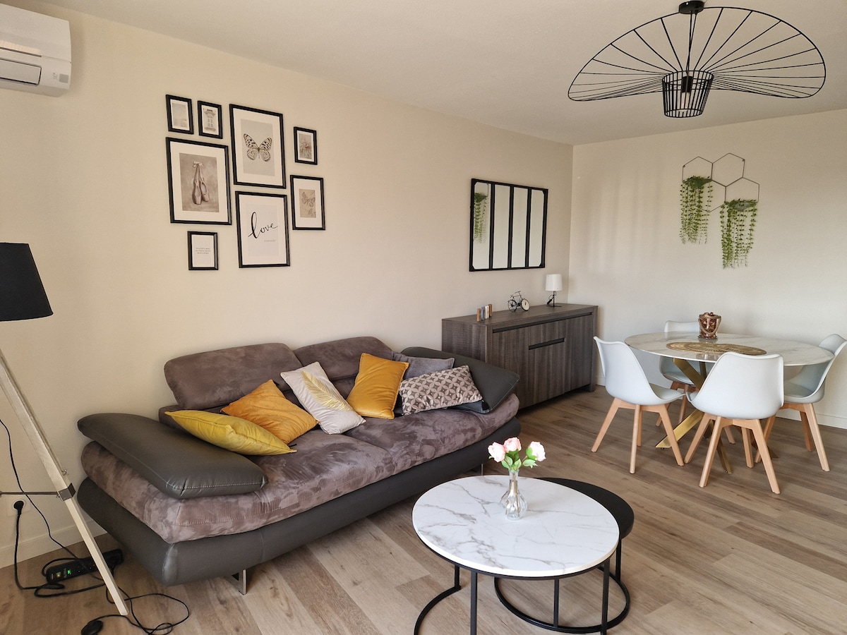 ✨T3 cosy de 60m2 et entièrement équipé à Blagnac. 📍Situé proche de l'aéroport (7 min en voiture) et du tramway "Arrêt Andromède-Lycée" qui vous permettra de rejoindre Toulouse avec simplicité. 🏠Une chambre avec lit Double, Un bureau avec canapé convertible, Une cuisine équipée ouverte sur salon et balcon. ✈️ Proche de l’aéroport 🚗 Deux places de parking dans un box sécurisé 🔑 Arrivée Autonome avec boite à clés 🐾 Animaux Acceptés 🧺 Linge de maison ❤️ Ajoutez l’annonce à vos favoris !