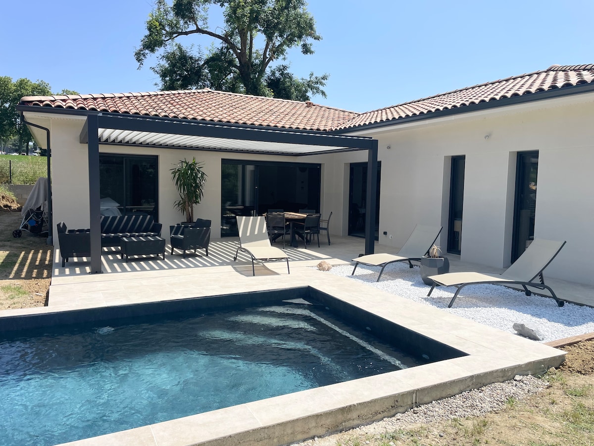 Beautiful house with pool & jacuzzi located north of Toulouse, with big deck made of exotic wood, dominating a private lake. The house is surrounded with wide wooded garden (2500m2) A secured parking lot (100m2) is accessible for the guest. The access is a private road, common with 3 other houses. It is very quiet with no direct view on Neighbors. Fabrice & Sophie will be happy to share with their little paradise. The Jacuzzi is optional please contact us.