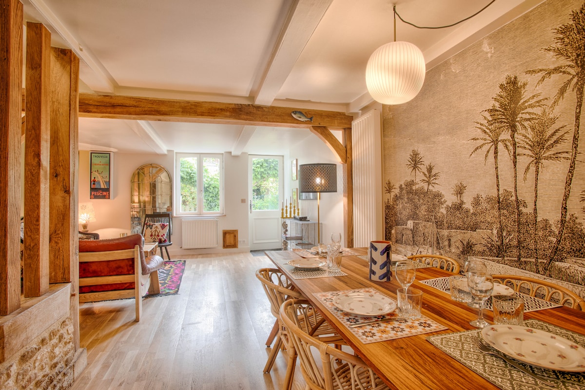 Situé dans le centre de Trouville, à 1 km de la plage, cet ancien hangar a été entièrement réhabilité par ses propriétaires. Il dispose de 3 chambres, d'une mezzanine, d'un salon cathédrale, d'une cuisine entièrement équipée et d'une salle à manger prévue pour 8 personnes, de deux salles de bain et de deux WC. Vous y trouverez également un babyfoot, une cheminée et un vidéo projecteur entrée HDMI pour vos soirées cinéma. Tout est prévu pour la détente et le confort.