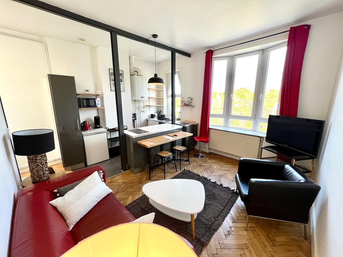 Recently renovated independent annex of an Art Deco house, formerly a biscuit factory, located near the Grand Boulevard, a 3-minute walk from the tram. The single-story accommodation features a bedroom with a double bed (140cm), and an additional sofa-bed (140cm). Kitchenette: hob, refrigerator, microwave. A spacious living room with direct access to the shaded garden (possible for lunches). WIFI, TV Available (NETFLIX) Quiet and peaceful surroundings. Parking available nearby.