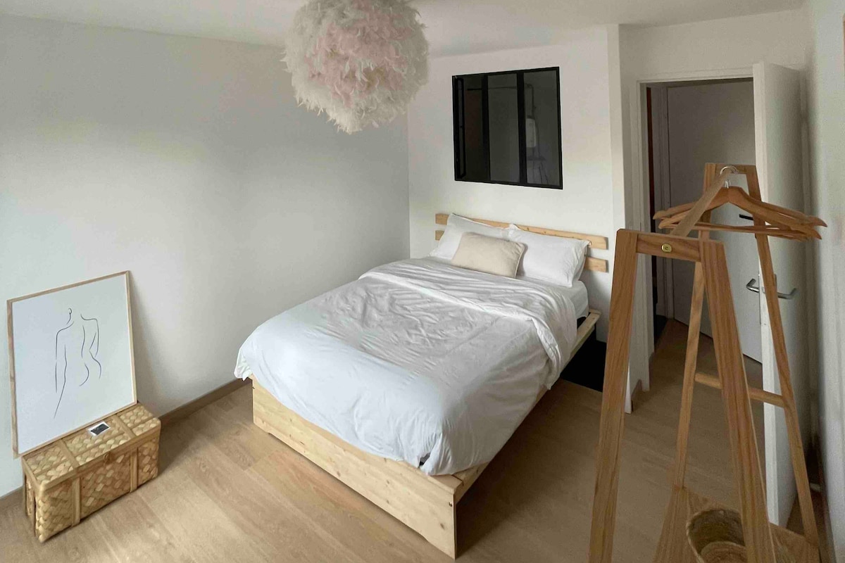 - I welcome you personally until 10 p.m. maximum. - There is no key box. Beautiful 50m2 apartment, ideal for professional travelers or traveling couples. All windows are double glazed with shutters. Private and secure carpark in the basement. ( free) - Entrance hall - 1 bedroom with queen-size bed - 1 bathroom, - W.C. - Bright living room - Equipped kitchen - Washing machine-dryer - All windows are garden side - Very calm