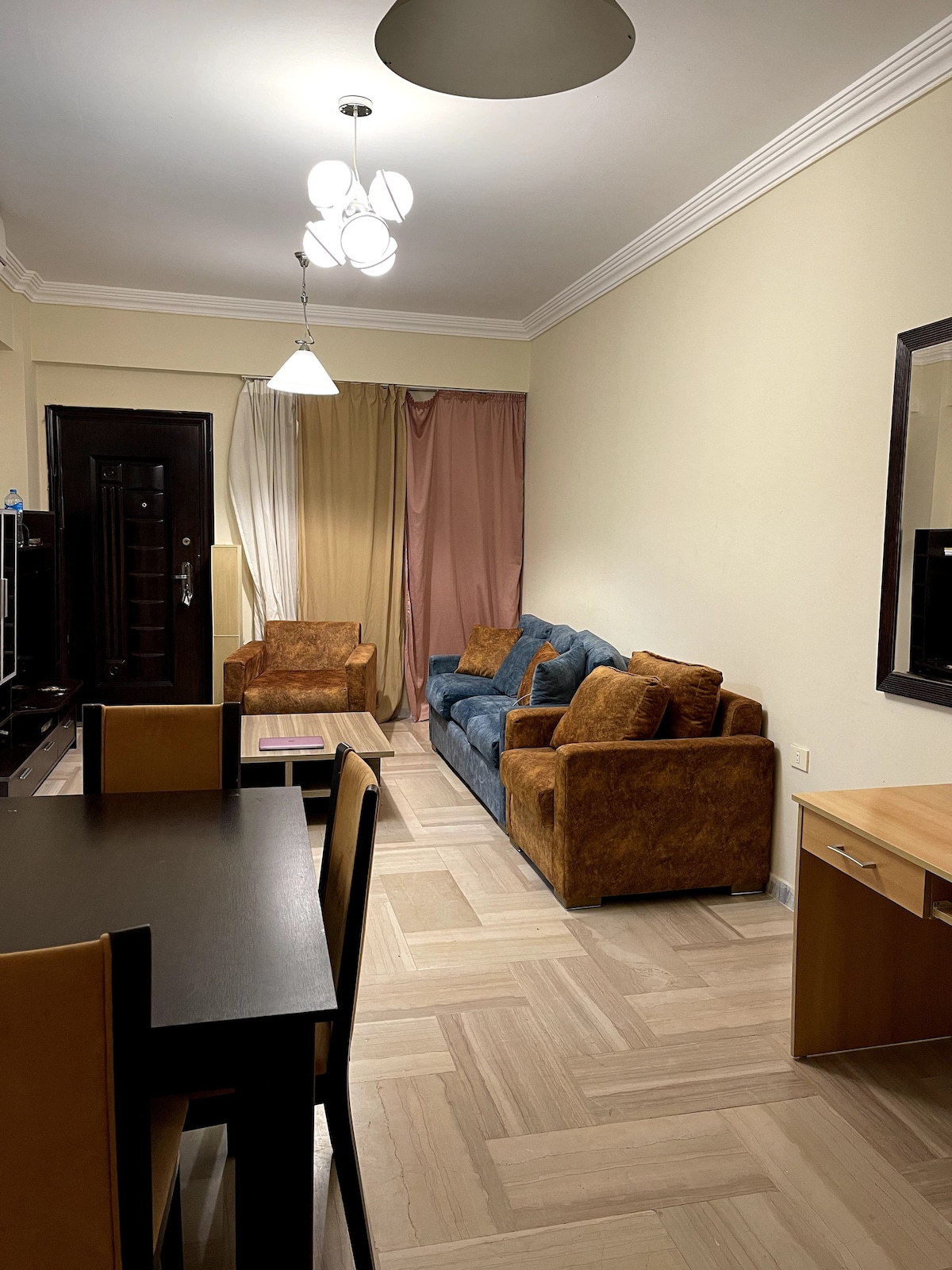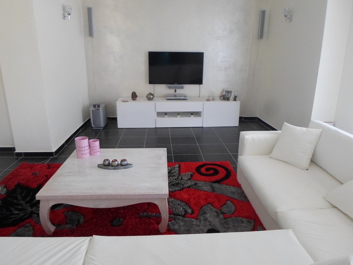 The apt. is located in a central & quiet(as quiet as a city neighbourhood can be remember this is Egypt let's just a 2min walk from the promenade & public beach family beach along the ocean &around the building you find kiosks to buy water &little things you may need as well as a laundry & internet shop for groceries you can walk to carrefour it will take you 5min . Souk Dahar is not far it will take you 15min walking to get there. I can show you around once you arrive if you like