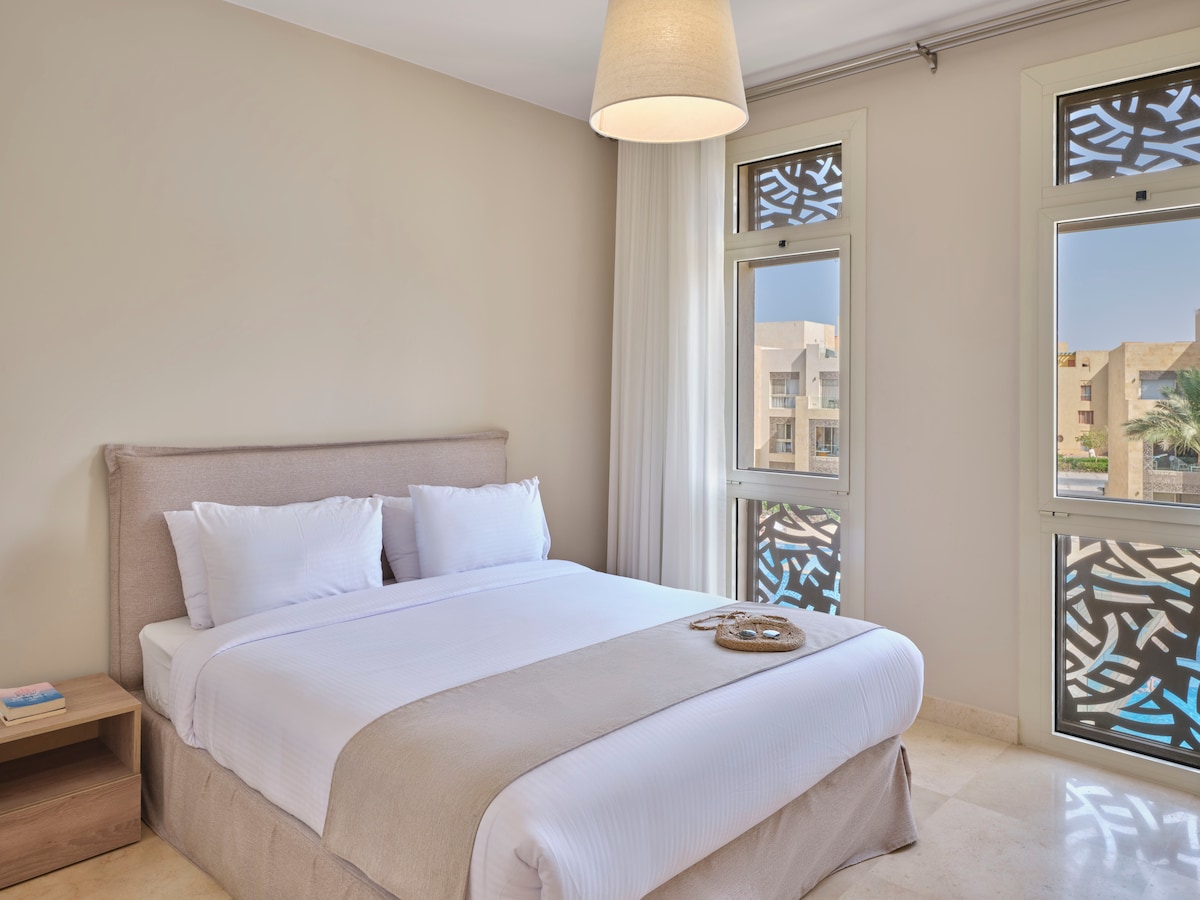 Looking for the Gouna vibes and all the comforts? This 2BR pool-view got you. *Enjoy a daily breakfast by the beach when booking this space Lemon Spaces Standard: -Fast Wifi -Professionally Cleaned -Fresh Towels -24/7 Support -Two housekeeping visits/ week -Comfortable Bedding -Shower amenities -24/7 Concierge Building amenities: - Front Desk - Housekeeping - Pools & Lagoons - Private Beach - Beach lounge - Breakfast places - Coffee house - Hair Salon - ATM - Supermarket
