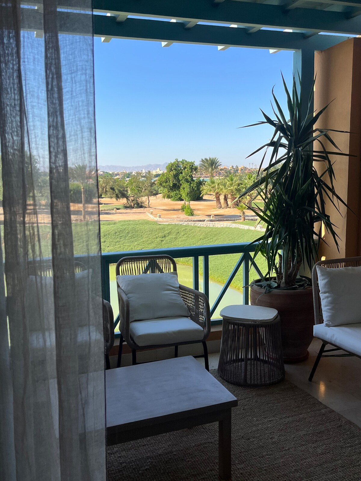 The modern, elegantly furnished apartment ensures a comfortable stay, while the sea views from your private balcony create unforgettable moments. Location The apartment is located in La Quinta Resort in Al Ahyaa, Hurghada and is 15 minutes away from El Gouna. Other things Those with Egyptian nationality need to have marriage papers to stay with spouse Due to building and security regulations, please provide copy passport asap after booking We offer any excursions in hurghada with pickup