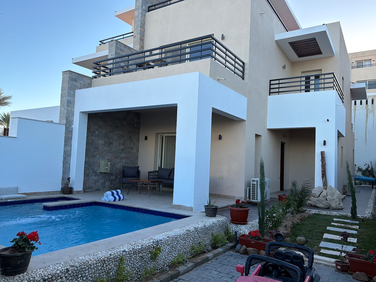 Elgouna靠近梦幻别墅,适合大家庭入住,带私人泳池和花园
