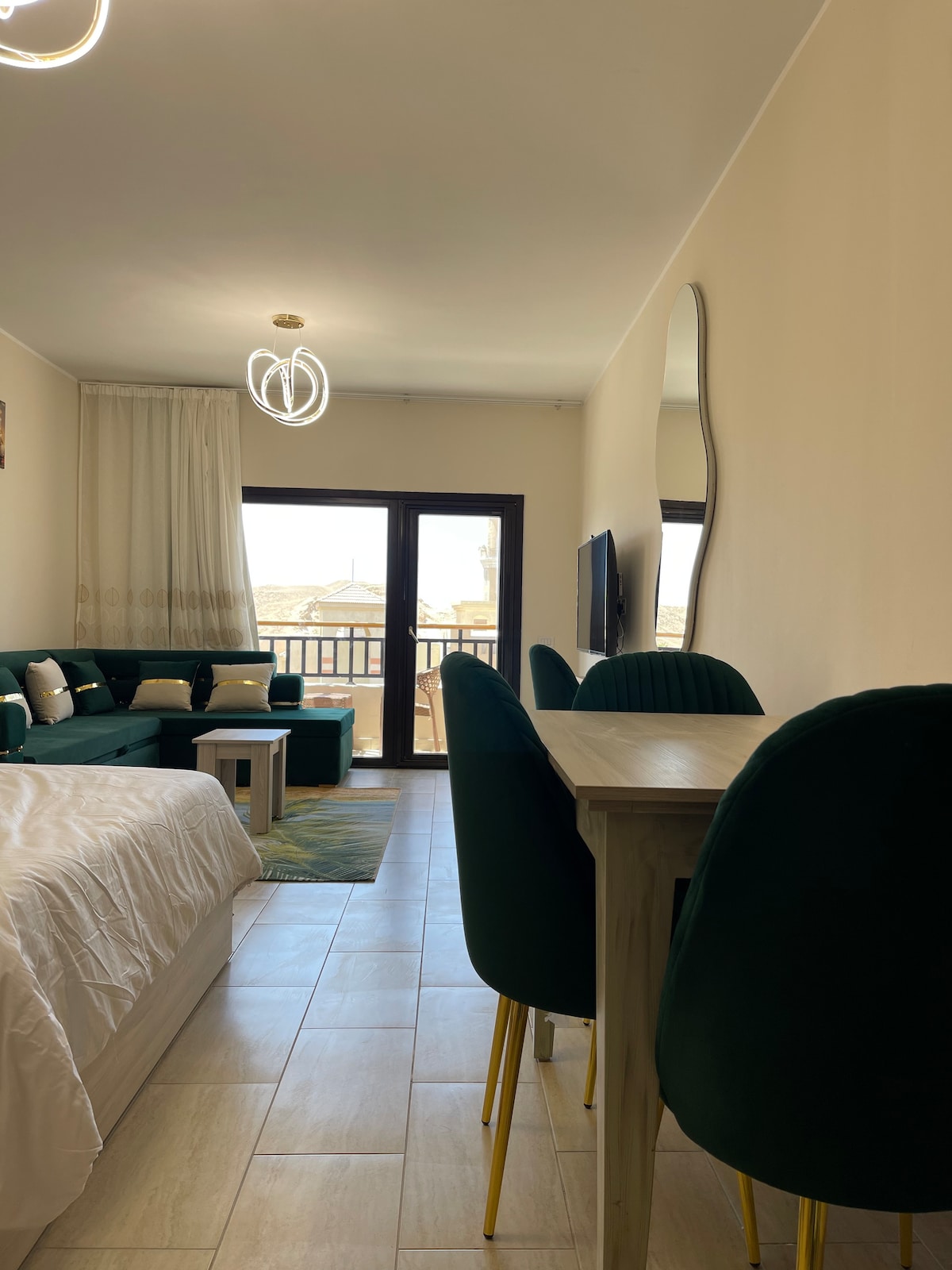 This stylish place is close to must-see destinations. Near to all beaches- in heart of hurghada in begging of Al mamsha promenade Very stylish , cosy and clean * house keeping * swimming pools * 24/7 security * kids area * underground parking * gated community