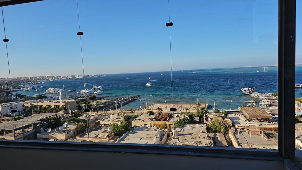 The place is a cozy modern studio overlooking one of the best wide sea view in Hurghada. The place is located in the heart of the city overlooking the corniche with direct access to the best the magnificent boulevard over the red sea. The place have direct access to three pools in the complex and a direct bridge to the beach.The studio is suitable for couples, friends and small families that seek magnificent comfortable stay with a great sea view and a perfectly located studio in the whole city.